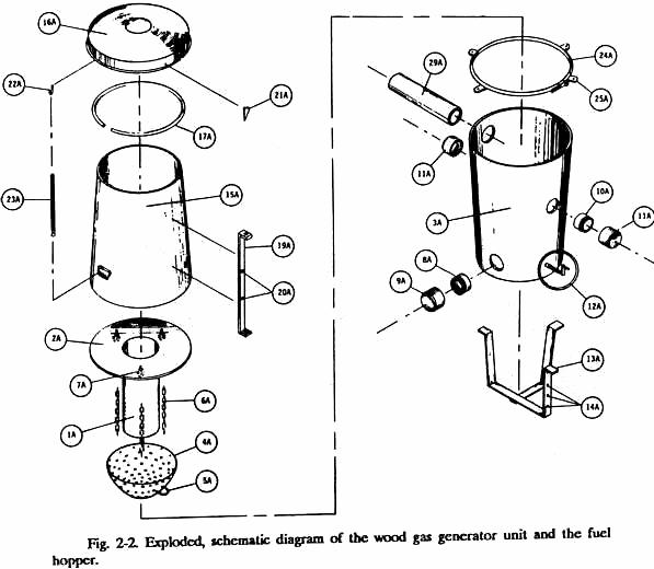 hopper and burned to produce wood gas.) Use high-temperature silicone on all