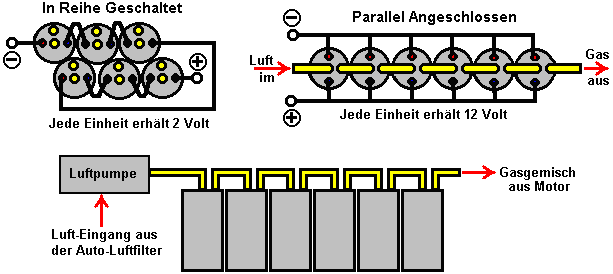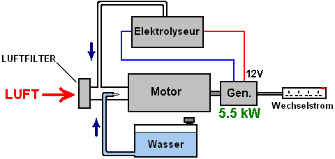 Interessant ist, ganz abgesehen davon, dass Generatoren laufen auf dem Wasser als die einzige sichtbare Brennstoff einschalten netzunabhängige Standorten rund um die Uhr seit vielen Jahren, und wurden ignoriert dieses kleine Detail, schauen Sie sich diese Zeitung Kommentar: Der US-Navy behauptet, dass es eine Möglichkeit, Meerwasser in Kraftstoff, verwandeln gefunden hat haben mehrere Jahrzehnte wissenschaftliche Experimente. Wenn true, sah die Entwicklung Kriegsschiffen entwickeln ihre eigenen Kraftstoff und operative 100 % der Zeit zu bleiben. Navy Wissenschaftler sagen, dass sie einem verwendet haben den Kraftstoff auf ein Modell-Flugzeug fliegen. Nannte es "einen großen Meilenstein", Vizeadmiral Philip Cullom wies darauf hin, dass "in der Marine haben wir einige ziemlich ungewöhnlichen Arten von Herausforderungen". Eine davon ist die Notwendigkeit zur Zeit von einen Öltanker zu tanken. Aber "eine revolutionäre Technologie wie Meerwasser, Brennstoff, entwickelt erfindet eine Menge für die Art und Weise, in denen wir tätig sind, wenn Sie, Logistik, Rediness denken" Die US Navy hat 289 Schiffe und die meisten stützen sich auf Öl basierenden Kraftstoff, abgesehen von einigen Flugzeugträgern und 72 u-Boote, die Kernenergie zu nutzen. Der Durchbruch kam nach dem Wissenschaftler einen Weg zum Extrahieren von Kohlendioxid und Wasserstoff aus Meerwasser gefunden. Die Gase werden dann in ein Brennstoff mit Hilfe von Katalysatoren umgewandelt. Cullom erklärte: "Wir sind in schwierigen Zeiten müssen wir auf neue Weise denken und schauen wie wir Energie zu erzeugen, wie wir Energie Wert und wie wir es verbrauchen. Wir müssen die Annahmen der letzten sechzig Jahre fordern wir ständigen Zugriff auf günstige, unbegrenzte Mengen an Kraftstoff hatten". Dies ist ein sehr interessanter Kommentar von Vizeadmiral Cullom. Zum einen bestätigt er, dass die Marine massiven Motoren mit Gas produziert durch die Elektrolyse betrieben werden können. Andererseits impliziert er sehr stark, dass die Betankung mit ölbasierten Verbrauchsmaterialien nicht mehr benötigt wird und bedeutet, dass die Elektrolyse deutlich über 100 % effizient, machen diese massiven Motoren batterielose. Drittens scheint es angemessen, die davon ausgehen, wenn diese massiven Motoren batterielosen durch Elektrolyse, sein können, die die sehr viel kleineren Motoren in Autos auch auf Elektrolyse, ausgeführt werden könnte, selbst wenn die gleiche Methode der Elektrolyse wurden nicht verwendet. Wir haben mit der winzigen, sehr ineffizienten Motoren befassen, die in Generatoren verwendet werden, die normalerweise Benzin als Treibstoff benutzen: In Großbritannien gelang es drei Männer, die einen Generator auf dem Wasser allein laufen, mit nur einfachen Dinge, die im Rahmen der durchschnittlichen Handwerker in seiner Werkstatt sind. Sie kauften ein Standard-Benzin-angetriebenen elektrischen Generator off eBay und schaffte es, ohne Verwendung von Benzin. Sie verwendeten eine HHO Gasstrom, die sie bei nur 3 lpm gemessen und prüfen sie die 5,5 Kilowatt-Generator mit 4 Kilowatt Geräte geladen. Danach verließen sie den Generator und ging zu einem sehr viel größeren Motor als ihre Pläne zur Stromerzeugung an den lokalen Energieversorger zu verkaufen. sie sagten: Die Ausrüstung wurde zusammen durch mein Mitarbeiter, der die Wasser / Elektrolyt (nicht ein Standard-Elektrolyt, 0,4 Vol.%) zugeführt setzen. Es war ein 5 kW Benzin-Generator (etwa 300cc). Wir anbei einen Chevrolet Lichtmaschine, die ständig erhebt eine 12-Volt 55 AHr-Batterie, die wiederum Mächte sechs HHO Röhren, von denen jeder 6 Watt zieht, für eine Gesamtmenge von 30 Watt. Die Ausgänge dieser Elektrolyseure sind in Reihe geschaltet und füttern sie das Gas in einer Niederdruck-Butangas "camping" Tank, der eine 18 psi Überdruckventil hat. Dieser Tank speist den Lufteinlass des Generators, der mit einer Drossel einstellbar ist. Wir luden die 30-Ampere-Steckdose des Generators mit verschiedenen Bohrern, Heizungen usw. Arbeiten, für mehr als vier Stunden. Die maximale Last, die wir ausprobierten war 4 Kilowatt, ein bar Heizung, einen Wasserkocher und zwei Bohrmaschinen. Die Rohre sind schwere Kunststoff (80 psi). Im Inneren befinden sich 4 Rohre aus Edelstahl (3 positive und 1 negative). Jedes Rohr eingerichtet 1 Liter Gas alle zwei Minuten, die insgesamt 3 Liter pro Minute beträgt. Sie werden schließlich warm anfühlen, aber sie werden nicht heiß. ![]() In Groben Zügen Um dieses Ziel zu erreichen, sehr viel wie Stan Meyer, müssen wir füttern den Motor drei Dinge:
