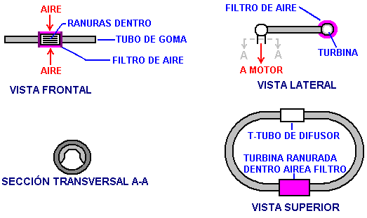5. Otros Dispositivos Útiles El Vórtice Aire-alimentaba el sistema: Ted Ewert ha desarrollado y ha probado un dispositivo muy eficaz y simple que puede mejorar el funcionamiento de algunos vehículos. Este dispositivo trabaja el mejor con los vehículos del cuatro-cilindro porque la succión aérea pulsada de vehículos con menos cilindros, refuerza el efecto beneficioso. Éste es un dispositivo silencioso, simple y barato que refuerza la corriente de aire en el artefacto. Esto puede tener un efecto dramático en la actuación del artefacto. Por ejemplo, Ted tiene un Datsun 310 viejo qué ha sido estar sentado sin usar durante años. La gasolina ("gasolina") pierde es los fragmentos más ligeros en seis meses o para que y eso lo hace menos volátil y más difícil quemar lejos. El Datsun de Ted tiene la gasolina en el tanque que tiene cinco años y el automóvil no correrá en ese combustible con él es la succión aérea normal. Sin embargo, cuando Ted puso uno de sus turbinas en él, empieza inmediatamente y corre fino con ese combustible viejo. Esa turbina de vórtice de particular se ha doblado "El Respirador." El Datsun tiene un carburettor que las muestras que esta turbina trabaja bien con el carburettors. ![]() Este dispositivo simple es un tubo del vórtice hecho de un pedazo corto de cañería de PVC que ha sido el slotted y ha formado. Encaja entre el filtro aéreo y cuerpo del acelerador, o carburettor, y causas el aire entrante para hilar a una proporción relativamente alta, creando un vórtice. La velocidad angular es crucial en la formación de un vórtice fuerte y el entrar aéreo el Respirador del filtro aéreo, llega a los ángulos rectos a las hendeduras de la turbina, mientras dando un giro inmediato y poderoso dentro de la tubería. Ted dice: “la Mayoría de las personas piensa en una masa aérea que hila como no tener ninguna propiedad particularmente rara. Esto no es correcto. Una masa aérea que hila tiene algunos las muy únicas y útiles propiedades. La aerodinámica normal, y las físicas de Newtonian lineales son incapaces de explicar las propiedades de un flujo de aire que hila a la velocidad alta. De hecho, cuando comparó a un flujo estático de aire dentro de una cañería, un vórtice se comporta de casi completamente la manera opuesta. Todo el hilado objeta, si ellos son sólidos, líquido o gaseoso, contenga dos fuerzas contrarias: centrífugo y centrípeto. El centrífugo es el travelling de fuerza que ensancha fuera del eje del centro, y centrípeto es la fuerza acortando que tira en hacia el centro. Este concepto de fuerzas duales es importante a entender un vórtice. "Moderno" las físicas han decidido que la fuerza centrífuga no existe y ahora se refiere a él como un ‘' falso o fantasma de ‘la fuerza de '. Esto ilustra cómo aislado de la academia del mundo real se ha vuelto y por qué se ha estancado. La combinación de estas dos fuerzas, mientras actuando juntos en un vórtice, cree algunas únicas condiciones. Uno de estas condiciones es una configuración del laminar. Las laminaciones Co-axiales forman a lo largo del vórtice, mientras creando numerosas capas de hilado de aire casi independientemente de nosotros. Estas capas están separadas por las zonas de sumamente bajo, virtualmente ponga a cero, fricción y esto les permite hilar a las proporciones diferentes. Como los giros del vórtice más rápidamente, las dos fuerzas contrarias se puestas más fuerte. Esto lamina el flujo más allá así como comprimiendo las capas. Las zonas del bajo-fricción permiten una senda del unimpeded lo a la masa de aire central comprimida es el flujo axial a través de la cañería. Esto es la marcha atrás del flujo condiciona para una recta, masa de aire non-coherente que tiene una tendencia a desarrollar fricción y resistencia, debido a la turbulencia, en la proporción directa a su velocidad a través de una cañería. La proporción del giro determina el grado de condensación aérea y la proporción de flujo lineal de la masa. El más rápidamente que el vórtice hila, el más hace lo que nosotros queremos que es crear un flujo denso, comprimido y rápido-mudanza. Esto es por qué nosotros tomamos el flujo de aire de la caja aérea y usamos su velocidad y dirección (90 grados) para comenzar el giro en nuestro tubo. Esto es por lejano la manera más simple y más eficaz de conseguir el ayuno que hila aéreo. Se aumentan las propiedades de un vórtice en el paso con la velocidad angular. Así como una cima tambalea y se cae cuando hiló despacio, para que un vórtice no exhibirá ninguna propiedad fuerte hasta hiló muy rápidamente. Como usted puede saber, una parte importante de aire abastecedor a un artefacto es la habilidad de proporcionar mucho aire en un estallido corto. Esta turbina crea una masa aérea que hila que puede singularmente proporcionar esta deuda aérea a su virtualmente composición de laminar de frictionless y la presión construyó a a través de la condensación. El vórtice proporciona el aire comprimido, denso al cilindro que toma menos energía significativamente para atraer en la deuda a él se guarda la energía inercial, y es la habilidad de entrar la dirección de él libremente es eje de rotación. Entre ciclos del artefacto, cuando el aire no se necesita, el vórtice continúa hilando y construir a la presión adicional. Esta masa aérea que hila actúa como un volante y energía de las tiendas que se ponen para usar en el próximo golpe de la succión. Un flujo aéreo estático tiene ningún cosas así guardó la energía y tiene que ser acelerado por el golpe de succión de artefacto cada aire de tiempo se necesita, mientras gastando la energía por eso. Esta propiedad del volante es importante a entender por qué el vórtice trabaja así como hace. A menos que el vórtice se pulsa, o moduló, ninguna energía extra puede desarrollarse. En un automóvil del multi-cilindro el flujo de aire se vuelve así sos