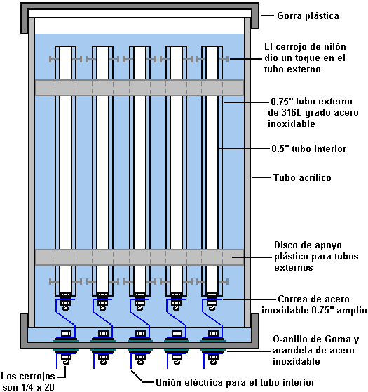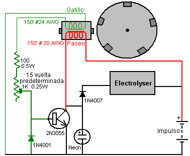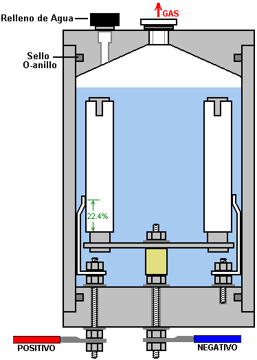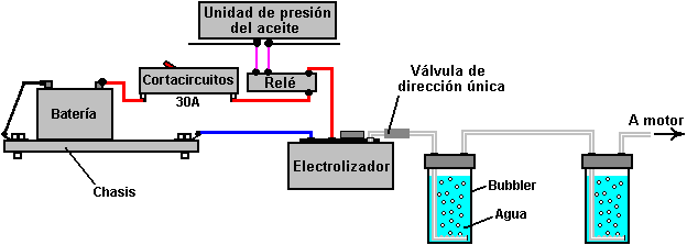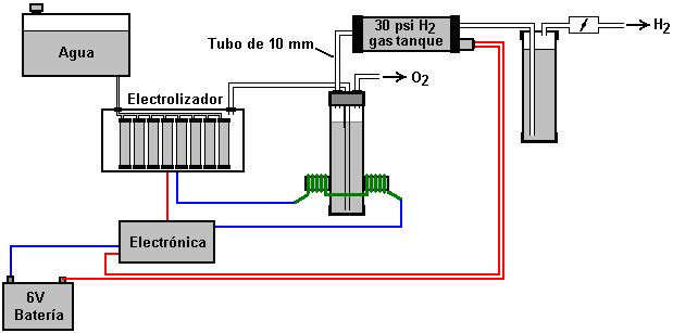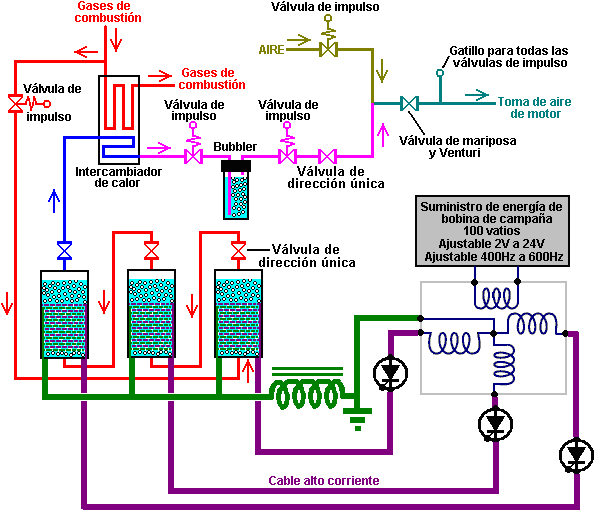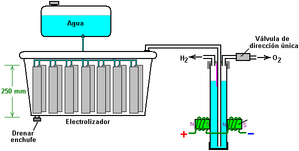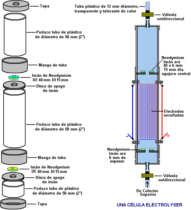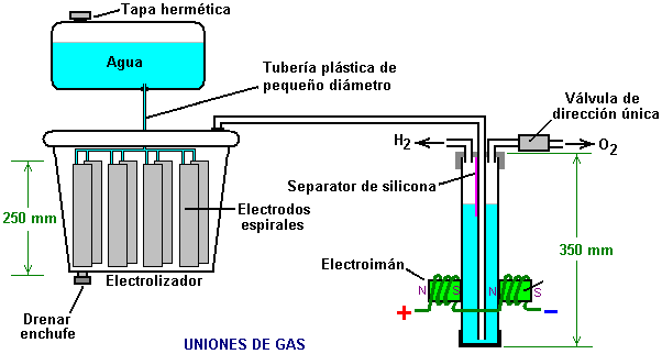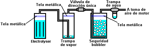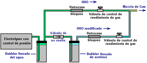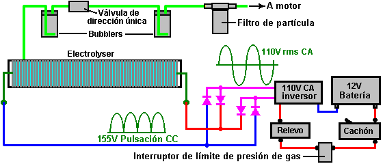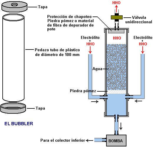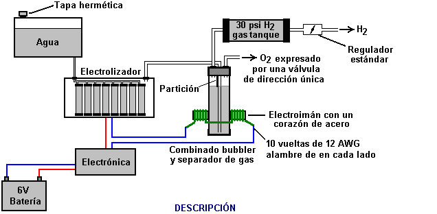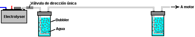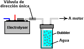 O ![]() El gas del hydroxy producido por un propulsor de CC de este tipo contiene 30% hidrógeno del monatomic aproximadamente que los medios que 30% del hidrógeno están en la forma de solos átomos de hidrógeno y no combinaron pares de hidrógeno de átomos. La forma del monatomic es aproximadamente cuatro veces más enérgico que la forma combinada y para que sube un volumen mayor dentro del albergue del propulsor. Si el propulsor queda se vuelto fuera de para un periodo largo de tiempo, entonces estos solos átomos de hidrógeno tropezarán en el futuro con nosotros y combinarán para formar el diatomic menos enérgico forme del gas. Como esto sube menos espacial dentro del propulsor, la presión dentro del propulsor deja caer y esto se ha conocido para chupar el agua atrás fuera del bubbler en el propulsor. Nosotros no queremos esto para pasar como él diluye nuestra concentración del electrólito cuidadosamente moderada y puede hacer la deuda ineficaz a los bubbler a la falta de agua. Si el propulsor queda se vuelto fuera de para un periodo largo de tiempo, entonces estos solos átomos de hidrógeno tropezarán en el futuro con nosotros y combinarán para formar el diatomic menos enérgico forme del gas. Como esto sube menos espacial dentro del propulsor, la presión dentro del propulsor deja caer y esto se ha conocido para chupar el agua atrás fuera del bubbler en el propulsor. Nosotros no queremos esto para pasar como él diluye nuestra concentración del electrólito cuidadosamente moderada y puede hacer la deuda ineficaz a los bubbler a la falta de agua. ![]() El plan del bubbler no es difícil. Con suerte, usted quiere un número muy grande de burbujas pequeñas ser formado y flotar el upwards a través del agua. Esto es porque da la conexión mejor entre el gas y el agua y para que puede hacer un trabajo muy bueno de lavar cualquier rastro de vapour del hydroxide fuera del gas del hydroxy antes de que se dé al artefacto. También se separan bien las burbujas pequeñas de nosotros y hay ninguna oportunidad real de una llama que atraviesa el agua dónde las burbujas grandes podrían unir juntos y podrían formar una columna de gas así que cuando ellos suben a la superficie. ![]() En este bubbler bueno diseñe, la cañería que alimenta el hydroxy gasea en el bubbler está torcido en una L-forma. El extremo de la cañería se bloquea fuera de, y se taladran muchos agujeros pequeños en la sección horizontal de la cañería. Sólo unos agujeros se ven en este diagrama, pero habrá un número grande en la construcción real. Como el propio propulsor, la cañería de toma de corriente de gas necesita ser protegida de las salpicaduras de agua causó por el vehículo que revisa un choque. Es muy importante asegurarse que ese agua no es arrastrado en el artefacto junto con el gas, para que se usan material de anti-lodo o uno o más confusiones para prevenir este acontecimiento. Así la protección global para el flujo de gas es: ![]() Donde el primer bubbler está cerca del propulsor y el segundo uno se pone cerca del artefacto. De vez en cuando, puede usarse el agua de los primeros bubbler para cubrir al agua dentro del propulsor para que se devuelva cualquier rastro de hydroxide que puede haber alcanzado el bubbler al propulsor, mientras guardando su concentración del electrólito precisamente el derecho y asegurándose que el agua en el bubbler siempre está fresca. Hay un último artículo que es un extra optativo. A algunas personas les gusta agregar un interruptor de gas-presión. Si, por cualquier razón, la presión empieza a subir - dice que la cañería de la toma de corriente se bloqueó - entonces el interruptor de presión desconectaría el suministro eléctrico y detendría la subida de presión cualquier extenso: ![]() Una decisión que tiene que ser hecho es la proporción de producción de gas de hydroxy que es el mejor para usted. La mayoría de las personas parece pensar que el más grande el volumen de gas del hydroxy el bueno. Eso no es necesariamente verdad porque un uso muy eficaz del gas es hacerle actuar como un igniter para el combustible normal del artefacto y se han logrado los resultados muy satisfactorios con el hydroxy gasee las proporciones de flujo en el rango de 0.4 a 0.7 litros por minuto. Usted controla la proporción de producción de gas controlando la corriente, o por la concentración del electrólito o ajustando el flujo actual que usa un circuito electrónico. Cada litro de agua produce aproximadamente 1,750 litros de gas del hydroxy, para que usted puede estimar la longitud de tiempo que el propulsor puede operar en un litro de agua. Por ejemplo, si su propulsor está produciendo 0.7 litros de gas por minuto. Entonces, producirá 1,750 litros en 1,750 / 0.7 minutos y ése es 2,500 minutos o 41 horas 40 minutos. Como el propulsor sólo opera cuando usted está manejando, usted está mirando 41 horas de manejar tiempo y si usted maneja aproximadamente dos horas por día, tomaría tres semanas para usar un litro de agua. Las dimensiones interiores de su propulsor le permiten calcular cómo lejano el nivel del electrólito dejará caer si un litro de agua se saca de él. Generalmente hablando, normalmente es considerado que cubriendo a mano de vez en cuando al propulsor con el agua, es un método absolutamente bueno de funcionamiento. El plan del propulsor descrito sobre tiene una capacidad del electrólito buena en cada célula y cubrir así a con el agua no deben ser una tarea mayor. Como el agua de la palmadita y bien el agua tiene un trato bueno de sólidos disueltos en ellos, cuando el agua se lleva por la electrólisis, estos sólidos dejan caer fuera de solución y caída al fondo del albergue, y/o cubre los platos con una capa de material no deseado. Por esta razón, la vida es más fácil tanta si destiló se usa el agua por hacer el electrólito y por cubrir al propulsor después del uso. Es posible tener un suministro de agua 