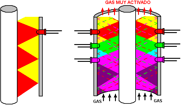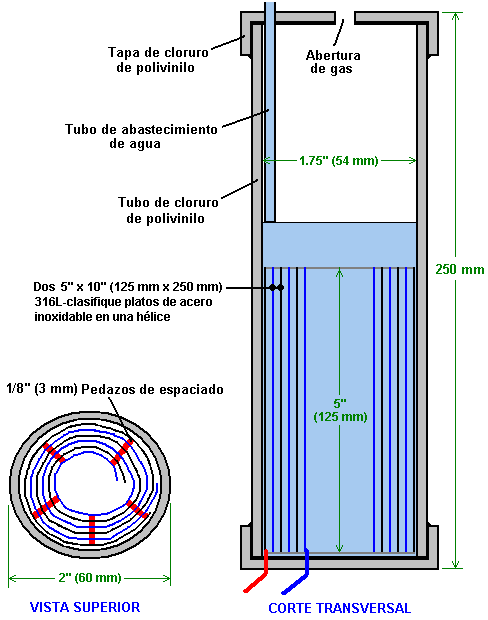 Cuando trabajando con el hydroxide seco divide en hojuelas o gránulos, la seguridad de uso tuerce los ojos, caucho enguanta, una camisa del sleeved larga, calcetines y pantalones largos. También, no lleva su ropa favorita cuando ocupándose de solución del hydroxide como él no es la cosa mejor para seguir la ropa. También no es el daño para llevar una máscara de la cara que cubre su boca y nariz. Si usted está mezclando el hydroxide sólido con el agua, siempre agregue el hydroxide al agua, y no la otra ronda de la manera, y usa un recipiente plástico por el mezclar, preferentemente uno que tiene la capacidad de la mezcla acabada dos veces. El mezclando deben hacerse en una área bien-ventilada que no es ningún draughty como las corrientes aéreas puede volar el hydroxide seco alrededor. Al mezclar el electrólito, nunca use el agua calurosa. El agua debe estar fresca porque la reacción química entre el agua y el hydroxide genera un trato bueno de calor. Si posible, ponga el recipiente mezclando en un recipiente más grande llenado del agua fría, como eso controlar la temperatura ayudarán, y si su mezcla debe “el hervor encima de” contendrá el spillage. Agregue sólo una cantidad pequeña de hydroxide en un momento, mientras revolviendo continuamente, y si usted deja de revolver por cualquier razón, vuelva a poner las tapas en todos los recipientes. Si, a pesar de todas las precauciones, usted consigue alguna solución del hydroxide en su piel, se lo quita con el agua del funcionamiento fría suficiente y aplica un poco de vinagre a la piel. El vinagre es agrio, y ayudará el equilibrio fuera la alcalinidad del hydroxide. Usted puede usar el jugo del limón si usted no tiene el vinagre para dar - pero siempre es una idea buena para tener una botella de vinagre hábil. La concentración del electrólito es un factor muy importante. Generalmente hablando, el más concentrado el electrólito, el mayor la corriente y el más grande el volumen de gas del hydroxy produjo. Hay tres factores del comandante sin embargo, para considerar: 1. La resistencia al flujo actual a través de los platos de electrodo de metal. 2. La resistencia al flujo actual entre el metal chapa y el electrólito. 3. La resistencia al flujo actual a través del propio electrólito. 1.En un plan del electrolyser bueno como aquéllos mostrado anteriormente, el propio plan es sobre tan bueno como un propulsor de CC puede conseguir, pero entendiendo cada uno de estas áreas de pérdida de poder es importante para la posible actuación mejor. Nosotros nos enseñamos en la escuela que metales dirigen electricidad, pero lo que probablemente no se mencionó era el hecho que algunos metales como el acero limpio son los conductores bastante pobres de electricidad y eso es por qué los cables eléctricos son hecho con los alambres de cobre y no los alambres de acero. Esto es cómo el flujo actual ocurre con nuestros platos del electrolyser: ![]() El hecho que nosotros tenemos pliegues y curvaturas en nuestros platos no tiene el efecto significante en el flujo actual. La resistencia al flujo actual a través de los platos de electrodo de metal es algo que no puede superarse fácilmente y económicamente, y para que tiene que ser aceptado como un arriba. Generalmente hablando, la calefacción de esta fuente es baja y no una materia de preocupación mayor, pero nosotros proporcionamos una cantidad grande de área del plato para reducir este componente de pérdida de poder tanto como es práctico. 2. La resistencia para fluir entre el electrodo y el electrólito es una cuestión completamente diferente, y pueden hacerse las mejoras mayores en este área. Después de la comprobación extensa, Bob Boyce descubrió que una mejora muy considerable puede hacerse si una capa catalizadora se desarrolla en la superficie del plato activa. Los detalles de cómo esto puede hacerse se da después en el compañero D9.pdf el documento como la parte de la descripción del electrolyser de Bob. ![]() 3. La resistencia para fluir a través del propio electrólito puede ser minimizada usando el catalizador mejor a su concentración óptima. Al usar el hydroxide de sodio, la concentración óptima es 20% por el peso. Como 1 c.c.p. de agua pesa un gramo, un litro de agua pesa un kilogramo. Pero, si 20% (200 gramos) de este kilogramo será compuesto de hydroxide de sodio, entonces el agua restante puede pesar sólo 800 gramos y para que será sólo 800 c.c.p. en el volumen. Así, para constituir un 20% "por el peso" la mezcla de hydroxide de sodio y el agua destilada, se agregan los 200 gramos de hydroxide de sodio (muy despacio y cuidadosamente, como explicado anteriormente por Bob) a sólo 800 c.c.p. de fresco destilado el agua y el volumen de electrólito producidos serán aproximadamente 800 c.c.p. Cuando el hydroxide de potasio está usándose, la concentración óptima es 28% por el peso y para que, se agregan 280 gramos de hydroxide de potasio (muy despacio y cuidadosamente, como explicado anteriormente por Bob) a sólo 720 c.c.p. de frío el agua destiló. Los dos de estos electrólitos tienen bien un punto helado debajo de eso de agua y esto puede ser un rasgo muy útil para las personas que viven en lugares que tienen los inviernos muy fríos. Otro factor que afecta el flujo actual a través del electrólito es la distancia que la corriente tiene que fluir a través del electrólito - el mayor la distancia, el mayor la resistencia. Reduciendo el hueco entre los platos a un mínimo mejora la eficacia. Sin embargo, los factores prácticos entran en la obra aquí como las burbujas necesita el espacio suficiente para escapar entre los platos, y un compromiso activo bueno es un espacio de 3 mm. qué es uno octavo de una pulgada. ![]() Hay un problema sin embargo, con usar la concentración óptima de electrólito y eso es es probable que el flujo actual causado por el electrólito grandemente mejorado sea mucho más que nosotros quer