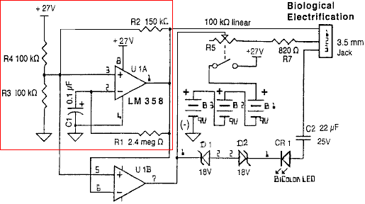 ![]() This design uses an OP77GP operational amplifier chip to boost the output signal from the A1302 chip which is a Hall-effect device. The gain of the DC-connected operational amplifier is set by the ratio of the 1K and 1M fixed resistors shown shaded in the circuit diagram, giving a gain of 1,000. The circuit operation is simple. The six-volt battery charges the 10 microfarad capacitor which helps iron out any supply line fluctuations caused by varying current draw by the circuit. The 10K variable resistor is used to set the output meter display to zero when the Hall-effect device is not near any magnet. The 1K variable resistor is there to make fine tuning adjustments easier. When the A1302 chip encounters a magnetic field, the voltage on it’s output pin 3 changes. This change is magnified a thousand times by the OP77GP amplifier. It’s output on pin 6 is connected to one side of the display meter and the other side of the meter is connected to point “A”. The voltage on point “A” is about half the battery voltage. It would be exactly half the voltage if the two 4.7K resistors were exactly the same value. This is rather unlikely as there is a manufacturing tolerance, typically around 10% of the nominal value of the resistor. The exact value of the voltage on point “A” is matched by the OP77GP tuning and so the meter reads zero until a magnetic field is encountered. When that happens, the meter deflection is directly proportional to the strength of the magnetic field. The Weird Stuff You don’t need to know the following information, so please feel free to skip it and move on to something else. The presentation shown above is based on the conventional view of electronics and electrical power as taught in schools and colleges. This information and concepts works well for designing and building circuits, but that does not mean that it is wholly correct. Unfortunately, the world is not as simple as is generally made out. For example, it is said that current is a flow of electrons passing through the wires of a circuit at the speed of light. While it is true that some electrons do actually flow through the metal of the wires, the small percentage of electrons which actually do that, do it quite slowly as they have to negotiate their way through the lattice of the molecules of metal making up the body of the wires. In spite of this, when the On/Off switch of a circuit is flipped on, the circuit powers up immediately, no matter how long the wires are. The reason for this is that electrical current flows along the wires at very high speed indeed, but it flows rapidly along the outside of the wires, not rapidly through the wires. One thousandth of a second after switching on a circuit, the electrons flowing through the wires have hardly got started, while the current flowing along the outside of the wires has gone all around the circuit and back: ![]() The above sketch does not show the proportions correctly, as the current flow spiralling along the outside of the wire should be hundreds of thousands of times longer than shown, which is not practical in a diagram. The actual path taken by current flow makes the surface of the wire of particular importance, and the insulation material is also of great importance. In years gone by, wire manufacturers used to anneal (cool down) copper wires in air. This created a layer of cupric oxide on the outer surface of copper wires, and that layer gave the wire different characteristics than copper wire has today. William Barbat in his patent application claims that the cupric oxide layer can be utilised in making devices with greater power output than the power input from the user. Unfortunately, the world is not quite as simple as that, as power flowing in a circuit has at least two components. The electrical current which we measure with ammeters is as described above and is sometimes referred to as “hot” electricity as when it flows through components, it tends to heat them up. But there is another component referred to as “cold” electricity, so named because it tends to cool components down when it flows through them. For example, if the output wires of Floyd Sweet’s VTA device were short circuited together, frost would form on the device due to the heavy flow of “cold” electricity, and getting a “shock” from it could give you frostbite instead of a burn. “Cold” electricity is not something new, it has always been there as it is just one aspect of “electricity”. It has not been investigated much by conventional science because none of the instruments used to measure “hot” electricity, react to “cold” electricity at all. (Actually, “hot” electricity, “cold” electricity and magnetism are all features of a single entity which should really be called “electromagnetism”). Now the spooky bit: “cold” electricity does not flow along or through the wire at all. Instead, it flows in the space around the wire, possibly riding on the magnetic field caused by the “hot” current. Thomas Henry Moray is famous for building a device which captured “cold” electricity and produced a massive power output capable of powering a whole host of ordinary electrical pieces of equipment. In his many public demonstrations before he was intimidated into silence and his equipment smashed, he invited members of the audience to bring a piece of ordinary glass with them. Then, when his circuit was powering a row of lights, he would cut one of the wires and insert the piece of glass between the cut ends of the wires. This had no noticeable effect on his circuit, with the power flowing happily through the glass and on through his circuit, powering the lights just as before. That does not happen with “hot” electricity, but as the “cold” electricity is not flowing through or along the surface of the wire, a break in the wire is not a major obstacle to it. We still do not know very much about “cold” electr