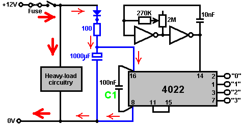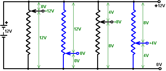Introduction This document is not an in-depth presentation of the subject of electronics. Instead, it is intended to give you sufficient (empirical) knowledge of the subject to be able to understand, design and build simple circuits such as the control circuits used with the ‘Free Energy’ devices described in the later parts of this document. Disclaimer This material is provided for information purposes only. Should you decide to attempt construction of some device based on information presented here and injure yourself or any other person, I am not liable in any way. To clarify this; should you construct something in a heavy box and drop it on your toe, I am not liable for any injury you may sustain (you should learn to be more careful). If you attempt to construct some electronic circuit and burn yourself with the soldering iron, I am not liable. Also, I strongly recommend that unless you are expert in electronics, you do not construct any device using, or producing more than 12 Volts - high voltage circuits are extremely dangerous and should be avoided until you gain experience or can obtain the help and supervision of a person experienced in constructing high voltage circuits. Voltage Voltage is the key to understanding electronics. Without voltage, nothing happens in electronics. What is it? Nobody knows. We know how to generate it. We know what it does. We know how to measure it, but nobody knows what it actually is. It is also called “Electro Motive Force” or “EMF” which is no help whatsoever in knowing what it is. That, is roughly equivalent to saying “the thing that pushes is the thing that pushes” - very true but absolutely no help whatsoever. OK, having admitted that we really don't know what it is, we can start to say the things we do know about it: A new battery has a voltage between its terminals. This voltage is said to cause a current to flow through any complete electrical circuit placed across it. The current flowing through the circuit can cause various things to happen such as creating light, creating sound, creating heat, creating magnetism, creating movement, creating sparks, etc., etc. By using the current caused by a voltage, a device called a ‘Voltmeter’ can indicate how big the voltage is. The bigger the voltage, the bigger the current and the bigger the display on the voltmeter. The voltmeter can have a numerical display where you read the voltage directly from the display, or it can be an ‘analogue’ voltmeter where the voltage is shown by the position of a needle on a scale. The size of the voltage is stated in ‘Volts’ which is a unit of measurement named after the man Volta who introduced voltage to the world (it was always there, we just did not know about it). Voltages add up if they are connected the same way round, i.e. with the + terminals all facing the same way: ![]() The physical size of the battery usually determines the length of time it can supply any given current - the bigger the battery, the longer it can provide any given current. A battery is constructed from a number of ‘cells’. The number of cells in the battery controls the voltage of the battery. For example, an ‘AA’ size battery (what used to be called a ‘penlight’ battery) has a single ‘cell’ and so produces 1.5 Volts when new. The very much larger and heavier ‘D’ battery also has just one cell and so it also produces 1.5 Volts when new. The difference (apart from the higher cost of the ‘D’ cell) is that the larger cell can provide a much higher current if both batteries are discharged over the same period of time. There are several different types of battery construction. A rechargeable NiCad battery has a single cell but its construction method means that it produces about 1.35 Volts when fully charged. In passing, NiCad batteries have a ‘memory’ characteristic which means that if they are recharged before they are fully discharged, then the next time they are discharged they run out of power at the voltage level it had when the last charging was started. Consequently, it is a good idea to fully discharge a NiCad battery before charging it again. Car and motorcycle batteries are described as Lead/Acid batteries. This type of construction is not very convenient being large, heavy and potentially corrosive. The big advantages are the ability to provide very high currents and giving 2.0 Volts per cell. These batteries are normally produced as 6 Volt or 12 Volt units. The Amp-Hours for lead/acid car batteries is usually quoted for a 20 hour discharge period, so a fully charged, new, 20 AHr battery can provide 1 Amp for 20 hours of continuous use. That battery loaded to give 5 Amps, will not provide that current for 4 hours but might only last 2 hours, or perhaps a little better. The manufacturers literature should give an indication of the performance, but if it is important, run your own test to see how the battery actually works in practice. “Mains units” are known in the electronics world as “Power Supply Units” or “PSUs” for short. These convert the mains voltage (220 Volts in UK, 110 Volts in USA) to some convenient low voltage; 12 Volts, 9 Volts, 6 Volts, or whatever is needed. A mains unit can provide several different voltages simultaneously. Resistance Being familiar with Voltage and Resistance is the key to understanding electronic circuitry. Resistance is a measure of how difficult it is for current to flow through something. Some materials such as glass, ceramics, wood and most plastics do not easily carry a current and so are considered to be ‘insulators’. That is why you will see power lines hung from their pylons by a series of ceramic discs. Current flows easily through metals, especially along the surface of the metal, so cables are made from metal wires surrounded by a layer of plastic insulation. The higher grade cables have wire cores made up of many small-diameter strands as this increases the surf