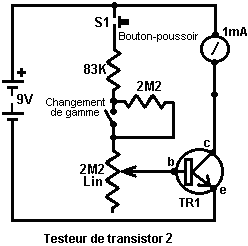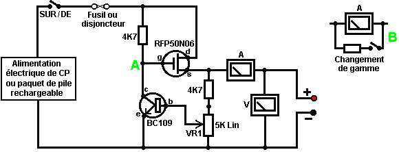Visitez et voir ce qui est disponible, combien il coûte et ce qui vous fait appel. Cela ne pourrait pas être une mauvaise idée d'acheter un multimètre vraiment bon marché et l'utiliser pendant quelque temps pour voir s'il a manques qui sont un embêtement et si oui, qu'améliorations vous voulez personnellement d'un mètre plus cher. Il pourrait valoir la peine de recevoir une alimentation électrique de banc sophistiquée qui vous permet de mettre n'importe quel voltage que vous voulez et qui affiche le courant étant tiré par votre circuit de développement : ![]() Pourtant, il n'y a aucun besoin de gaspiller l'argent sur une unité sophistiquée quand vous pouvez construire une unité excellente de votre propre avec le voltage stabilisation, la production ajustable, a mesuré le courant, etc. etc. Personnellement, en développant un circuit à être utilisé avec une batterie, je crois que vous êtes le branchement plus riche du développement d'une batterie, cette façon que les caractéristiques de la batterie sont incluses dans n'importe quelles épreuves que vous réalisez. Alimentation électrique : Si vous voulez, vous pouvez construire un système d'alimentation électrique de lit d'épreuve de développement très convenable. Cela a l'avantage que vous pouvez le faire dans le style le plus convenable pour votre propre utilisation. Vous pouvez aussi rendre la protection ultra-sensible et construire dans l'ensemble de circuits supplémentaire comme le contrôleur de transistor et la boîte de substitution de résistance pour produire un lit intégré d'essai. Vous pourriez peut-être utiliser un circuit comme cela : ![]() Ici, le pouvoir est fourni par un paquet de Ni-goujat rechargeable batteries ou peut-être, une unité de conduite principale avec le voltage stabilisation. Comme dans tous les circuits réels, la chose suivante dans le circuit est toujours un sur/de le changement pour que la source de pouvoir puisse être débranchée tout de suite devrait n'importe quel problème survenir. Ensuite, comme toujours, vient un fusible ou un disjoncteur, pour que doit le problème être sérieux, il peut débrancher le circuit plus vite que vous pouvez réagir. Si vous voulez, vous pouvez construire votre propre disjoncteur ajustable super-exact pour utiliser dans cette position. Les deux transistors et trois résistances forment une production ajustable, stabilisée. Le transistor FET a une haute puissance de sortie manipulant la capacité et une exigence de pouvoir de contribution très basse et est si bon pour contrôler la tension de sortie. La résistance ‘VR1’ est rembourrée avec le 4K7 la résistance uniquement pour réduire le voltage à travers la résistance variable. VR1 est réglé pour contrôler la tension de sortie. Si l'attraction actuelle est augmentée et la tension de sortie est baissée légèrement, donc le voltage sur la base du transistor BC109 est réduit. Cela commence à éteindre le transistor, en levant le voltage au point un, qu'à son tour, lève la tension de sortie, en s'opposant à la variation provoquée par la charge. La production est contrôlée, premièrement par grand milliammeter pour montrer l'attraction actuelle et deuxièmement, sur le côté de production du milliammeter, un voltmètre. Cela permet très près de surveiller du pouvoir fourni au prototype, surtout si le milliammeter est placé à côté du prototype. Vous pouvez introduire ce circuit dans une large boîte plate qui fournit une surface travaillant à côté du milliammeter. Au point ‘B’ dans le susdit diagramme, une méthode pour changer la gamme actuelle du milliammeter en plaçant une résistance 'manoeuvre' à travers cela. Quand le changement est fermé, quelques écoulements actuels par la résistance et certains par le milliammeter. Cette résistance a une valeur très basse, donc vous êtes la réalisation plus riche de cela vous-même. Disons que nous voulons doubler la gamme du mètre. Soudez le changement à travers le mètre et pour la résistance utilisent une longueur de blessure métallique couleur cuivre émaillée autour d'un petit ancien. Mettez une charge sur la production pour que le mètre montre une déviation de grande envergure. Fermez le changement. Si le courant affiché est exactement la moitié de quel il était, sinon, éteignez, enlevez un fil pour baisser la lecture ou ajouter un fil pour lever la lecture et répéter l'épreuve jusqu'à exactement la moitié du courant est affichée. Plus bas la valeur de la résistance manoeuvre, les écoulements plus actuels par cela et moins par le mètre, qui donne alors une lecture plus basse. Notez s'il vous plaît: il est très important d'avoir un fusible ou un disjoncteur dans le pouvoir étant livré à votre circuit d'essai. N'importe quelle erreur dans la construction du prototype peut faire un courant important être tiré des réserves et cela peut être dangereux. Souvenez-vous, vous ne pouvez pas voir le courant. Même si vous avez un mètre sur le courant étant livré, vous ne pouvez pas remarquer la haute lecture. Le premier signe de problème peut être la fumée! Vous pouvez facilement faire frire le circuit que vous construisez si vous n'avez pas de raccourci de sécurité, utilisez donc un fusible ou d'autre artifice qui limite le courant à deux fois que vous vous attendez à ce que le circuit tire. Ainsi enfin cela, de qu'équipement avez-vous besoin vraiment? Vous avez besoin d'un petit fer de soudure et le multicoeur soudent, une paire de pince à longues jambes et d'un multimètre. Une autre chose est un instrument pour couper des fils et enlever l'isolation avant la soudure. Les préférences personnelles varient. Certaines personnes préfèrent un des nombreux instruments personnalisés, certaines personnes utilisent un couteau, j'utilise personnellement une paire de ciseaux à ongles droits. Vous choisissez avec lequel vous êtes confortables. Pas exactement une m