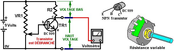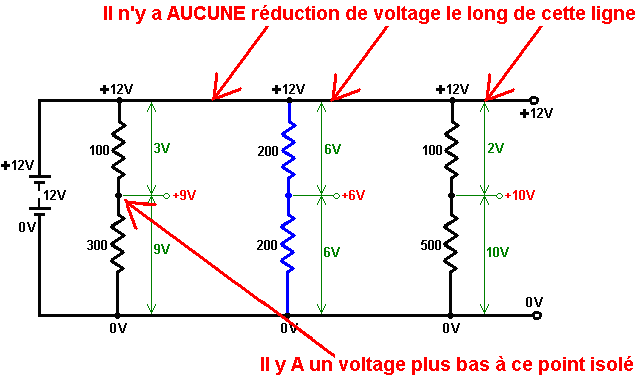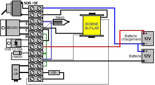 Introduction Ce document n'est pas une présentation détaillée du sujet d'électronique. Au lieu de cela il est eu l'intention vous donner la connaissance (empirique) suffisante du sujet pour être en mesure de comprendre, concevoir et construire des circuits simples comme les circuits de contrôle utilisés avec la 'Énergie Libre’ les artifices décrits dans les parties dernières de ce document. Désaveu Cette matière est fournie aux buts d'information seulement. Si vous décidez d'essayer la construction d'un artifice basé sur les informations présentées ici et vous blesser ou autre personne, je ne suis pas responsable de toute façon. Le clarifier; si vous construisez quelque chose dans une lourde boîte et le laissez tomber sur votre orteil, je ne suis pas responsable pour aucune blessure que vous pouvez soutenir (vous devriez apprendre à être plus prudents). Si vous essayez de construire un circuit électronique et vous brûler avec le fer de soudure, je ne suis pas responsable. Aussi, je recommande fortement qu'à moins que vous ne soyez spécialisés dans l'électronique, vous ne construisez pas d'utilisation d'artifice, ou production de plus de 12 volts - de hauts circuits de voltage sont extrêmement dangereux et devraient être évités jusqu'à ce que vous acquériez de l'expérience ou pouvez obtenir l'aide et la supervision d'une personne connue dans le fait de construire de hauts circuits de voltage. Voltage Le voltage est la clé de la compréhension de l'électronique. Sans voltage, rien n'arrive dans l'électronique. Qu'est-ce que c'est? Personne ne sait. Nous savons comment le produire. Nous savons qu'il fait. Nous savons comment le mesurer, mais personne ne sait quel il est vraiment . On l'appelle aussi “la Force de Motif d'Electro” ou “EMF” qui n'est aucune aide du tout dans la connaissance quel il est. Cela, est grossièrement équivalent au dicton “la chose qui les poussées est la chose qui pousse” - très vrai, mais absolument aucune aide du tout. Bien, ayant reconnu que nous ne savons pas vraiment quel il est, nous pouvons commencer à dire les choses nous en sommes vraiment au courant : Une nouvelle batterie a un voltage entre ses terminus. On dit que ce voltage fasse un courant couler par n'importe quel circuit électrique complet placé à travers cela. Le courant coulant par le circuit peut provoquer des choses différentes à arriver comme la création de la lumière, la création du son, la création de la chaleur, la création du magnétisme, la création du mouvement, la création des étincelles, etc., etc. En utilisant le courant provoqué par un voltage, un artifice s'est appelé 'un Voltmètre' peut indiquer comment grand le voltage est. Plus grand le voltage, plus grand le courant et le plus grand l'étalage sur le voltmètre. Le voltmètre peut avoir un étalage numérique où vous lisez le voltage directement de l'étalage, ou cela peut être un voltmètre 'analogique' où le voltage est montré par la position d'une aiguille sur une échelle. La grandeur du voltage est exposée dans 'les Volts' qui est une unité de mesure appelée comme l'homme Volta qui a présenté le voltage au monde (c'était toujours là, nous n'en avons pas juste été au courant). Les voltages s'accordent s'ils sont raccordés la même voie autour, c'est-à-dire avec les terminus tout le revêtement à la même voie : ![]() La grandeur physique de la batterie détermine d'habitude le terme il peut fournir n'importe quel courant donné - plus grand la batterie, plus long il peut fournir n'importe quel courant donné. Une batterie est construite d'un certain nombre 'de cellules'. Le nombre de cellules dans la batterie contrôle le voltage de la batterie. Par exemple, une batterie de grandeur “AA “ (ce qui a eu l'habitude d'être appelé une batterie ‘penlight’) a 'une cellule' simple et produit ainsi 1.5 volts quand nouveau. La très beaucoup plus grande et plus lourde batterie ‘D’ a aussi juste une cellule et donc il produit aussi 1.5 volts quand nouveau. La différence (sauf plus haut coûté de la cellule ‘D’) est que la plus grande cellule peut fournir un beaucoup plus haut courant si tous les deux batteries sont renvoyés sur la même période. Il y a plusieurs différents types de construction de batterie. Une batterie NiCad rechargeable a une cellule simple mais sa méthode de construction signifie qu'il produit environ 1.35 volts quand complètement chargé. En passant, NiCad batteries ont une caractéristique 'de mémoire' qui signifie que s'ils sont rechargés avant qu'ils sont complètement renvoyés, alors la prochaine fois ils sont renvoyés ils manquent du pouvoir au niveau de voltage qu'il avait quand le dernier fait de charger a été commencé. Par conséquent, c'est une bonne idée de complètement renvoyer une batterie NiCad avant le fait de le charger de nouveau. La voiture et la motocyclette batteries sont décrits comme Plomb-Acide batteries. Ce type de construction n'est pas très convenable être grand, lourd et potentiellement corrosif. Les grands avantages sont la capacité de fournir de très hauts courants et une offre de 2.0 volts par cellule. Ces batteries sont normalement produits comme les unités de 6 volts ou de 12 volts. Les Heures d'ampère pour la première/acide voiture batteries sont d'habitude citées pendant une période de renvoi de 20 heure, donc complètement chargé, nouveau, 20 batterie AHr peut fournir 1 Ampère depuis 20 heures d'utilisation continue. Cette batterie chargée pour donner 5 Ampères, ne fournira pas ce courant depuis 4 heures, mais pourrait seulement durer 2 heures, ou peut-être un peu mieux. La littérature de fabricants devrait donner une indication de la performance, mais si c'est important, dirigez votre propre épreuve pour voir comment la batterie travaille vraiment en pratique. “Les unités de conduite principale” sont connues dans le monde d'électronique comme