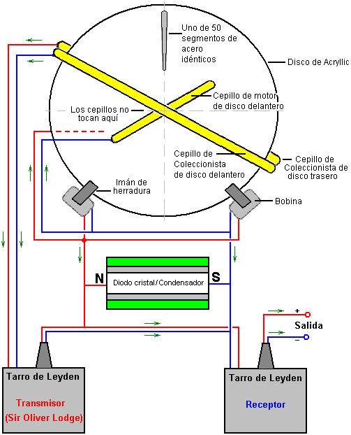 La mismo-propulsión después de mano-empezar los discos se logra a través de la adopción del principio de Poggendorff (científico alemán de los 1870s) en que sesgó los cepillos conductivos produzca la mismo rotación en los motores electrostáticos (no los generadores). El módulo del diodo de cristal especial proporciona las funciones duales de regulación de frecuencia y amplificador del capacitancia probablemente - a los dos frascos de Leyden - como la parte del circuito de resonancia eléctrico, desde que se conecta con los bobinas del imán herradura. Este dispositivo se comprende de tres circuitos eléctricos separados: