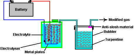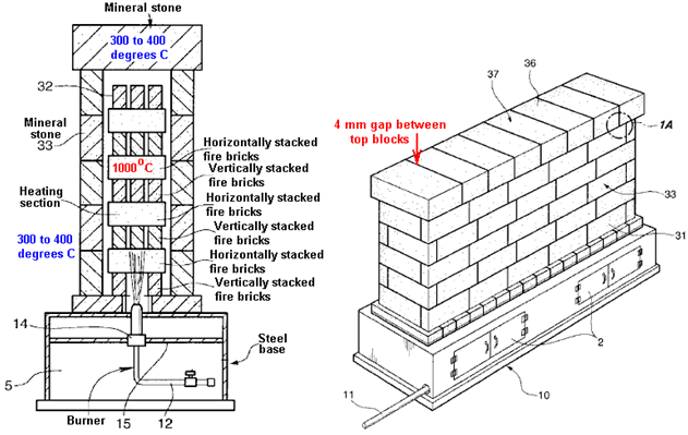 ![]() The idea is to bubble the HHO gas produced by electrolysis of water, through a liquid hydrocarbon such as turpentine or acetone. The bubbler should have a large number of small holes in the incoming tube, so that a very large number of small bubbles of HHO gas pass through the hydrocarbon. This brings the majority of the HHO gas into intimate contact with the hydrocarbon and the process is claimed to convert the HHO gas into a new variety of gas which is not explosive, can be stored for later use, and which burns with the same characteristics as coal-gas (“town gas”). David Quirey has used this method very successfully for more than twenty years now (details in chapter 10). Sang Nam Kim. Mr Kim of Korea also proposes methods of using hydroxy gas for heating and using Henry Paine's hydrocarbon bubbling method. He has four patents on the subject of heating: US 6,397,834 in June 2002 - Heating Furnace US 6,443,725 in September 2002 - Energy Generatin US 6,761,558 in July 2004 - Heating Apparatus US 7,014,740 in March 2006 - Electrolyser The first of these shows his method of getting both beneficial radiant heat and convention heating from a stone construction like this: ![]() This unit is intended as a seriously powerful heating source for a minimum of one room. Mr Kim quotes a hydroxy gas requirement of 30 litres per minute which is a very considerable amount, and if the gas is produced by electrolysis of water at Faraday efficiency, it would need a current draw of 4.2 kilowatts. There is every indication that Mr Kim's method of electrolysis is low efficiency as his latest patent shows a radiator and fan: ![]() Mr Kim also shows a burner intended for use with an existing furnace. He remarks that the outer casing gets to be red hot, running at 1,000oC or more, and so any replication of his design should be treated with care when mounting fixtures are being constructed. In this design, Mr Kim uses the Paine technique and recommends bubbling his hydroxy gas through hexane liquid (C6H14) where 0.3 litres of hexane per hour gets burnt as well as the hydroxy gas. He rates the hydroxy gas requirement of this burner as being 20 lpm, which at Faraday efficiencies, represents 2.8 kilowatts of electricity, although as mentioned before, it is likely that the actual amount of hydroxy gas in his 20 lpm volume is much lower than he thinks, and so will have a lower electrical requirement when using a more electrically efficient electrolyser. His burner is like this: ![]() Mr Kim believes that the hexane prevents flashback ignition. He does not appear to specify the heating material inside the burner but it is probably stainless steel wool. He speaks of gas pressures of 1 Kg per sq. cm., which, if my calculations are correct is 14.22 psi. which is not possible for 100% hydroxy gas as it will explode spontaneously at 12 psi. due to its high energy state and electrical charge. He states that the secondary flames at the top of the unit "burn with a blue flame colour" and that is different to the flame colour lower down. Mr Kim believes that the hydroxy burnt at the bottom of the burner forms water vapour which is then split into hydroxy gas again by the very high temperature and that is the reason for the blue flames at the top. Personally, I don't believe that this will take place and that the effect may have a good deal to do with the hexane liquid being burnt. However, this burner design appears to be a good one for lower grades of hydroxy gas. If a higher grade of hydroxy gas is being used, please be aware that a hypodermic-size tiny burner orifice will be needed to avoid flashbacks and no commercial flashback arrester will work reliably with good quality hydroxy gas on every occasion and so a bubbler is absolutely essential. The Hydrogen Garage In 2013, Andrew of the Hydrogen Garage in America stated: We are heating up the shop with only 216 watts, 12 Volts at 18 amps using one “dual 7 plate” electrolyser cell with a water tank and bubbler and a 5-inch dryer, hose and torch which can be operated continuously 24/7 if desired. The flames produced are pointed into a central stainless steel tube 12-inches (300 mm) long and 1-inch (25 mm) in diameter. Wrapped all around the central pipe are 10 more stainless steel tubes held together as a group by 2 hose clamps. The set of pipes is placed on the concrete floor. In our work, we have to prepare HHO electrolyser cells and the HHO gas produced during that process is used to heat the shop. No more need for propane and no more headaches from 6 hours of heating the room. Now the HHO gas adds ozone to the air in the shop and there are no fumes and no smell. The burner used is shown here and it can be powered by one 14/7 HHO cell available here There is no need for a Pulse-Width Modulator unit as you can just use direct DC power from a DC power supply or battery charger. Solar panels can run HHO cells well. ![]() Catalytic HHO Heating from Justin Church On Sterling Allan’s website at http://peswiki.com there is a description of an HHO heating process which has been under development since 2010. It is a particularly interesting system in that no flame is involved, but instead, a stream of HHO gas is fed into a standard vehicle catalytic converter along with air which can freely enter the converter. Justin has found that with a quite low flow of HHO, such as that produced by 13.8V at 5A (70 watts), the converter heats up to a level which can barely be touched and that is quite remarkable considering that the converter is has substantial weight of metal in its construction. Measurements of the temperature inside the converter show that it is running at more than five hundred degrees F. Justin calls his unit the “H-Cat”: ![]() Sterling’s web site is definitely worth a visit. Electric power is very popular for heaters. However, with most appliances, it is a very expensive form of heating. There is a technique which is reputed to improve the efficiency
