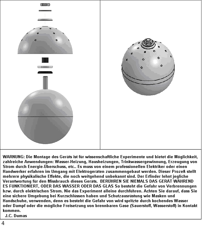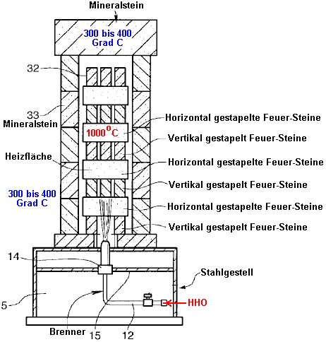 Die HHO Ändern Patent von Henry Paine Es ist eine alternative Methode die sie beansprucht wird das explosive HHO Gas in einem viel gefügiger Brennstoff umwandeln kann, besser geeignet zu herkömmlichen Brennern und Öfen. David Quirey wurde mit diesem System erfolgreich seit mehr als zwanzig Jahren, wie in Kapitel 10 aufgeführt. Die Methode wurde von Henry M. Paine in US-Patentschrift Nr. 308.276 dated 18. November 1884 patentiert und es ist sehr einfach: ![]() Die Idee ist, das HHO Gas durch die Elektrolyse von Wasser, durch eine flüssige Kohlenwasserstoffe wie Terpentin Blase. Die Wäscher sollte eine große Anzahl von kleinen Löchern in der eingehenden Tube haben, so dass eine große Anzahl von kleinen Luftbläschen HHO Gas die Kohlenwasserstoff passieren. Dies bringt die Mehrheit des HHO Gases in intimen Kontakt mit der Kohlenwasserstoff und der Prozess wird behauptet, um das HHO Gas in eine neue Sorte von Gas zu konvertieren, die nicht explosiv, ist für die spätere Verwendung und brennt die mit den gleichen Merkmalen wie Kohle-Gas ("Stadtgas") gespeichert werden können. David Quirey hat diese Methode sehr erfolgreich seit mehr als zwanzig Jahren heute (Details in Kapitel 10). Die HHO Gas-Heizungen von Sang Nam Kim. Herr Kim Korea schlägt auch Verfahren zur Verwendung von HHO-Gas zum Heizen und mit Henry Paine Kohlenwasserstoff-sprudelnden Methode. Er hat vier Patente zum Thema Heizung: US 6.397.834 im Juni 2002 - Heizung Ofen US 6.443.725 im September 2002 - Energy Generation US 6.761.558 im Juli 2004 - Heizgeräte US 7.014.740 März 2006 - Elektrolyseur Die erste davon zeigt seine Methode, sowohl positive Strahlungswärme und Konvention Erhitzen aus einer Steinbau wie diese: ![]() ![]() Diese Einheit wird als ein ernst zu starken Wärmequelle für ein Minimum von einem Raum bestimmt. Herr Kim zitiert einen HHOy Gasbedarf von 30 Liter pro Minute, die eine sehr beträchtliche Menge ist, und wenn das Gas durch Elektrolyse von Wasser an Faraday Effizienz produziert wird, wäre es eine Stromaufnahme von 4,2 Kilowatt benötigen. Alles deutet darauf hin, dass Herr Kim Methode der Elektrolyse niedrigen Wirkungsgrad ist wie seine neueste Patent zeigt einen Radiator und Lüfter: ![]() Es ist so gut wie sicher, dass es einen hohen Anteil von heißem Wasserdampf vermischt sich mit dem Gas, das verbrannt wird, und das wird die Brisanz des Gases zu reduzieren nahe Null sein. Es bedeutet auch, dass das tatsächliche Volumen der HHO Gas wahrscheinlich deutlich unter dem 30 lpm von Herrn Kim zitiert sein soll. Kim zeigt ebenfalls einen Brenner für den Einsatz mit einem bestehenden Ofens vorgesehen. Er bemerkt, dass die äußere Hülle auf rot heiß sein, läuft bei 1.000 oC oder mehr bekommt, und so jede Replikation von seinem Entwurf sollte mit Vorsicht behandelt werden, wenn Halterungen konstruiert wird. Bei dieser Ausführung nutzt Kim die Paine Technik und empfiehlt Durchperlen seinem HHO Gas durch Hexan Flüssigkeit (C6H14) wobei 0,3 l Hexan pro Stunde sowie die Hho Gas wird verbrannt. Er wertet die HHO Gasbedarf dieses Brenners als 20 lpm, die an Faraday Wirkungsgrade stellt 2,8 Kilowatt Strom, obwohl, wie zuvor erwähnt, ist es wahrscheinlich, dass die tatsächliche Menge der HHO-Gas in seiner 20 lpm Volumen wesentlich geringer ist als er denkt, und so wird eine geringere elektrische Anforderung haben, wenn Sie eine elektrisch effiziente Elektrolyseur. Seine Brenner ist wie folgt: ![]() Herr Kim glaubt, dass das Hexan Rückblende-Zündung verhindert. Er scheint nicht die Heizung Material im Inneren des Brenners angeben, aber es ist wahrscheinlich Edelstahlwolle. Er spricht von Gasdrücken von 1 kg pro cm²., Was, wenn meine Berechnungen richtig sind, ist 14,22 psi. was nicht zu 100% Hydroxy Gas möglich, da es spontan explodieren bei 12 psi. wegen seiner hohen Energiezustand und elektrische Ladung. Er erklärt, dass die sekundären Flammen an der Oberseite des Geräts "mit einer blauen Flamme Farbe brennen" und das ist anders als die Flamme Farbe tiefer. Kim glaubt, dass die HHO an der Unterseite des Brenners verbrannt Wasserdampf, der dann in HHO Gas wieder durch die sehr hohen Temperaturen gespalten und das ist der Grund für die blauen Flammen an der Spitze bildet. Persönlich glaube ich nicht, dass dies stattfinden wird und dass die Wirkung kann ein gutes Geschäft mit dem Hexan Flüssigkeit verbrannt zu tun haben. Allerdings scheint dieser Brenner Design ein gutes Jahr für Unterstufe Hydroxy Gas sein. Wird ein höherer Grad von HHO Gas verwendet wird, beachten Sie bitte, dass eine Injektionsnadel-Größe winzig Brennermündung benötigt werden, um Rückblende-Zündung zu vermeiden und keine kommerzielle Flammenrückschlagsicherung zuverlässig funktionieren mit guter Qualität HHO Gas bei jeder Gelegenheit werden und so ein Bubbler ist absolut wesentlich. Der Wasserstoff-Garage Im Jahr 2013 erklärte Andrew der Wasserstoff-Garage in Amerika: Wir sind im Shop mit nur 216 Watt, 12 Volt bei 18 Ampere mit einer "dual 7 Plate"-Elektrolyseur-Zelle mit einem Wassertank Erwärmung und Wäscher und ein 5-Zoll-Trockner, Schlauch und Fackel werden kann betrieben kontinuierlich 24/7, falls gewünscht. Die Flammen erzeugt werden gezeigt in einer zentralen Edelstahl Schlauch 12 Zoll (300 mm) lang und 1-Zoll (25 mm) im Durchmesser. Das zentrale Rohr umwickelt sind 10 weitere Edelstahlrohre mit 2 Schlauchklemmen als Gruppe zusammengehalten. Der Satz von Rohren befindet sich auf dem Betonboden. In unserer Arbeit wir müssen HHO Elektrolyseur Zellen vorbereiten und das HHO Gas produzierte, dass Prozess verwendet wird, um den Shop zu heizen. Müssen Sie nicht mehr für Propan und keine weitere Kopfschmerzen von 6 Stunden Heizung Zimmer. Jetzt das HHO Gas fügt Ozon in der Luft in der Werkstatt und es gibt keine Abgase und kein Geruch. Der Brenner verwendet wird an gezeigt hier und es kann von einem 14/7-HHO Zelle unter Strom versorgt werden hier Da Sie nur direkte DC Spannung von einem DC Ladeg