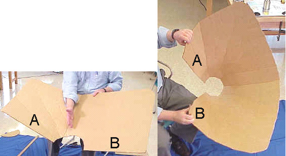 ![]() Bau-Schritte Schneiden Sie ein Halbkreis aus dem Karton ![]() Schnitt einen Halbkreis aus der Pappe, entlang des Bodens, wie unten gezeigt. Wenn der Trichter gebildet wird, wird dies zu einem Full-Kreis und sollte breit genug sein, um um den Kochtopf zu gehen. Also für ein 180 mm Durchmesser Kochtopf, ist der Radius des Halbkreises 180 mm. Für einen Liter Einmachglas, wie ich, schneide ich eine 130 mm Radius Halbkreis aus dem Karton. Bilden die Trichter ![]() Um den Trichter bilden, werden Sie bringen Seite A in Richtung der B-Seite, wie in der Figur gezeigt. Die Aluminiumfolie ist auf der Innenseite des Trichters zu gehen. Tun Sie dies langsam und hilft den Karton an die Form eines Trichters mit einer Hand zu bilden Falten, die strahlen aus dem Halbkreis. Arbeiten Sie sich rund um die Trichter, biegen Sie es in Etappen um den Trichter zu formen, bis die beiden Seiten überlappen und den Halbkreis bildet einen kompletten Kreis. Die Aluminiumfolie wird auf der Innenseite des Trichters zu gehen. Öffnen Sie den Trichter und legen Sie sie flach, "innen oben", in Vorbereitung für den nächsten Schritt. Kleben Sie die Folie am Karton ![]() Leim oder Klebstoff an der Oberseite (inneren) Oberfläche der Pappe, dann schnell anwenden die Aluminiumfolie auf der Oberseite der Leim, das Anbringen der Folie an den Karton. Stellen Sie sicher, dass der glänzendsten Seite der Folie ist auf der Oberseite, da dies wird Ihr reflektierende Oberfläche im Trichter. Ich mag nur genug Klebstoff für eine Breite der Folie gelegt, so dass der Klebstoff feucht bleibt, während die Folie aufgebracht wird. Ich auch überlappen Folienstreifen um etwa 1 "(oder 2 cm). Versuchen Sie glätten die Aluminiumfolie so viel wie man vernünftigerweise möglich, aber kleine Fältchen wird nicht viel Unterschied machen. Wenn Karton nicht verfügbar ist, kann man einfach ausgraben eine trichterförmige Loch in den Boden und richten Sie es mit einem Reflektor, eine feste Solarkocher für den Einsatz zu machen am Mittag. Registriert Seite A zu Seite B um den Trichter zusammen zu halten. ![]() Der einfachste Weg dies zu tun ist, um drei Löcher in den Karton stanzen, dass Line-Up auf Seite A und Seite B (siehe Abbildung). Dann eine Metall brad durch jedes Loch und durch Auseinanderziehen der Metallzinken befestigen. Oder Sie können eine Mutter-und-Bolzen, die beiden Seiten (A & B) miteinander zu verbinden. Seien Sie kreativ hier mit, was Sie zur Verfügung haben. Zum Beispiel, indem sie zwei Löcher zu einem Daumen-Breite auseinander, können Sie einen Bindfaden, Zwirn, kleines Seil, Draht oder Twist-tie in ein Loch und aus den anderen zu setzen, und binden Sie zusammen. Wenn A und B miteinander verbunden sind, müssen Sie einen "Trichter mit zwei Flügeln". Die Flügel können abgeschnitten werden, aber diese Hilfe, um mehr Sonnenlicht zu sammeln, also lasse ich sie auf. Klebeband oder Klebstoff ein Stück Aluminiumfolie über der Öffnung an der Unterseite des Trichters mit glänzenden Seite einwärts. ![]() Dies vervollständigt Montage Ihrer Solaranlage Trichter Herd. Für die Stabilität, platzieren Sie den Trichter in einem Karton oder einem anderen Feld, um Unterstützung zu leisten. Für langfristige Anwendungen kann es wünschenswert sein, ein Loch in den Boden graben, um den Trichter gegen starke Winde halten. Abschließende Schritte In diesem Stadium sind Sie bereit, Lebensmittel oder Wasser in das Kochgefäß oder Glas setzen, und setzen Sie den Deckel auf sicher. (Siehe Anleitung für Lebensmittel Garzeiten folgen). Legen Sie einen Holzblock in der unteren Innenseite des Kochbeutel. Ich benutze ein Stück 50 mm x 100 mm Bord, die in einem Quadrat geschnitten wird nominal 100 mm x 100 mm durch 50 mm dick. Dann das Kochen Gefäß mit der Nahrung oder Wasser auf der Oberseite des hölzernen Block, im Inneren der Tasche. Anschließend versammeln sich die Oberseite der Tasche in den Fingern und bläst Luft in die Tasche, um es aufzublasen. Diese bilden eine kleine "Treibhauseffekt" um das Kochgefäß, zu viel von der Wärme im Inneren zu fangen. Verschließen Sie die Tasche mit einem engen Kabelbinder oder Draht. Wichtig: Die Tasche sollte nicht berühren die Seiten oder den Deckel des Kochgefäßes. Die Tasche kann als "Konvektion Schild," verlangsamen Konvektionskühlung durch Luftströmungen. Legen Sie die gesamte Tasche und deren Inhalt im Inneren des Trichters am unteren wie in den Fotografien gezeigt. Platzieren Sie den Solar-Funnel Herd, so dass es die Sonne Gesichter. Denken Sie daran: Sonnenlicht kann die Augen weh: also bitte eine Sonnenbrille tragen, wenn ein Solarkocher! Der Trichter Kochherd ist so ausgelegt, dass der heiße Bereich tief im Inneren des Trichters aus der Gefahrenzone. ![]() Setzen Sie den Solar-Funnel Herd in der Sonne auf die Sonne zeigt, so dass es so viel Sonnenlicht wie möglich erfasst. Das Design des Trichters ermöglicht es, Solarenergie für etwa eine Stunde, ohne neu positioniert werden sammeln. Bei längeren Garzeiten, stellen Sie die Position des Trichters dem Lauf der Sonne folgen. In der nördlichen Hemisphäre, hilft es, die Solar-Trichter Cooker vor der Put einen südseitigen Wand oder Fenster, als dies spiegelt zusätzliches Sonnenlicht in den Trichter. Eine reflektierende Wand ist sehr wichtig, an Orten weiter weg vom Äquator und im Winter. In der südlichen Hemisphäre, das Sonnensystem Funnel Herd vor einem Nordseite Wand oder Fenster, um zusätzliche Sonnenlicht in Ihrem Herd reflektieren. Nach Kochen Beachten Sie, dass das Kochgeschirr wird sehr heiß sein: so nutzen Kochen Pads oder Handschuhe beim Umgang it! Wenn Sie Heizwasser in einem Einmachglas, können Sie feststellen, dass das Wasser kocht, wenn der Deckel zuerst entfernt wird - es wird heiß! Öffnen Sie den Kunststoff-Kochbeutel durch Entfernen der Twist-Krawatte. Mit Handschuhen oder ein dickes Tuch, heben Sie den Behälter aus der Tasche und legen Sie es auf den Boden oder Tisch. Öffnen Sie vorsichti