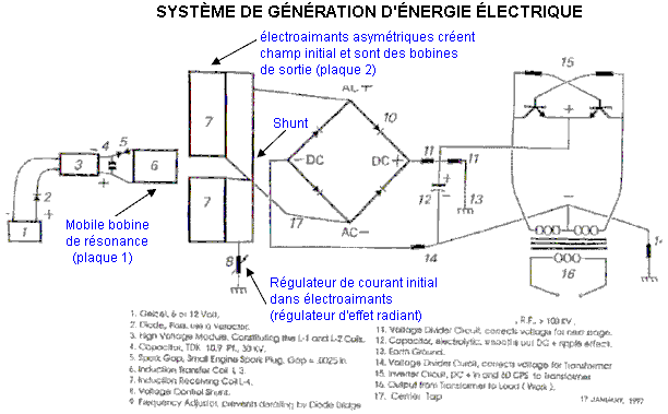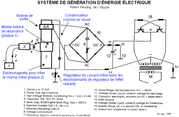 Comme vous le savez probablement, les transformateurs commerciaux et des moteurs électriques disponibles dans le commerce sont enroulées de façon symétrique qui les oblige à opposer à leur propre fonction - un peu comme obtenir un coup de pouce commencer avec une voiture dont la batterie est épuisée, mais, ayant deux personnes à la avant de pousser vers l'arrière et deux personnes à l'arrière en poussant vers l'avant. C'est tellement stupide qu'il est difficile de croire que quelqu'un puisse le faire, mais qui est exactement comment les moteurs et les transformateurs sont “ conçus “ et construits. Plus la puissance de sortie, plus la puissance de sortie est opposée à la puissance d'entrée, ce qui signifie que vous devez avoir une plus grande et une plus grande puissance d'entrée afin d'obtenir une plus grande production. Voilà ce que la loi de Lenz est tout au sujet. Il n'a pas à être de cette façon. Si vous construisez un transformateur non symétrique comme Thane Heins a fait, cet effet est absent et la puissance de sortie peut être quarante fois supérieure à la puissance d'entrée comme indiqué par les résultats des tests de banc. Il est pas du tout facile de construire un transformateur entièrement non-symétrique ou moteur, mais il y a d'autres façons d'aborder le problème. Vladimir Utkin a produit la présentation suivante expliquant les tenants et les aboutissants d'une autre façon de traiter le problème. Certains lecteurs peuvent ainsi trouver un peu technique dans les étapes ultérieures, mais les premières informations peuvent être compris par tout le monde : ![]() INTRODUCTION Il est bien connu, que les bobines orthogonaux, c'est-à-dire, bobines à angle droit par rapport à l'autre, n'interagissent pas. Ceci est illustré à la Fig. 1. Dans les diagrammes suivants, la lettre " U " représente la lettre " I " représente le courant et " L " représente une bobine de fil de tension : ![]() Fig.1 Ces bobines orthogonales n'interagissent pas Cela signifie que quand il y a une tension oscillante appliquée à la bobine L1 d'entrée, il n'y a absolument pas de tension induite dans la bobine L2. Il ne fait aucune différence si les bobines sont à noyau d'air ou si elles ont un noyau de fer. En d'autres termes, on peut considérer que les bobines isolées sont mises en suspension dans l'air. Ceci est un fait bien connu, mais il est considéré comme de peu d'intérêt car il est pensé pour être une mince affaire - il n'est pas. Si nous pouvons faire les bobines L1 et L2 interagissent de telle sorte que la puissance réelle peut être extraite de la bobine L2 sans que la puissance extraite affectant la bobine d'entrée L1, puis qui est une question et personne très différente rejetterais que comme étant " trivial " !! Cette situation très désirable peut en effet être entraîné comme le montre la Fig. 2, en ajoutant deux aimants permanents, M1 et M2, en face de l'autre sur l'axe de la bobine L1 et l'interrupteur de mise sous tension la bobine L1 avec une tension d'alimentation de courant avec, et pour cela, nous ajoutons le condensateur C et exploitons bobine L1 en résonance où le champ magnétique réel est dans l'espace ambiant. Ici, le courant d'entrée est à un minimum et que la sortie magnétique est à son maximum. Nous ajoutons une charge à la bobine L2 comme il est maintenant en mesure de fournir un courant de sortie : ![]() Fig.2 Bobines orthogonales interagissent avec une symétrie brisée. En Fig.2 les pôles Sud des aimants se font face, mais l'arrangement fonctionne également si elle modifiée de sorte que les pôles Nord font face. Je suggère que le problème est résolu, qui est, la charge RL reçoit la puissance réelle, ce qui n'a aucune incidence sur la résonance du circuit d'entrée. Je vais maintenant essayer d'expliquer comment et pourquoi cette configuration résout le problème de la rétroaction. Fig. 1, lorsque deux aimants (M1 et M2) sont ajoutés comme indiqué avec les mêmes pôles se faisant face le long de l'axe de la bobine L1, ce qui ajoute un champ magnétique qui circule perpendiculairement à l'axe de la bobine L1, et comprend une partie ou la tout, de bobine L2. Cela change tout, parce que les fluctuations magnétiques dans la bobine L1 peuvent modifier le champ magnétique produit par les aimants et les causes de tension et de courant dans la bobine L2 induites. Pour cela, nous avons fait le " déplacement " champ magnétique en ajoutant courant à la bobine L1 en alternance, ce qui entraîne une alternance de flux magnétique passant à travers la bobine L2. Courant et de tension sont induites dans la bobine L2 de sortie. Ceci est illustré dans l'illustration légèrement simplifiée Fig. 3, ce qui indique le déplacement du champ magnétique en fonction de si oui ou non l'oscillateur alimentant la bobine L1 augmente ou contrecarrant le champ magnétique produit par les aimants permanents. ![]() Fig. 3. Explication Principe de l'interaction asymétrique des bobines orthogonales en raison du mouvement du champ. La bobine de résonance L1 est utilisé pour créer un champ magnétique oscillant, mais que " déplacer " champ peut également être créé en utilisant des aimants permanents, en les introduisant dans l'intervalle entre deux aimants se faisant face à travers le mouvement physique de ces aimants supplémentaires comme le montre la Fig. 4. Les aimants mobiles seraient sur un rotor et les pôles des aimants du rotor alternaient N, S, N, S ... ![]() Fig.4 Explication du principe par l'utilisation d'aimants permanents. Les erreurs suivantes sont possibles dans l'interprétation des interactions décrites : 1. Exploiter l'énergie de résonance à la charge. 2. Exploiter l'énergie du champ magnétique à la charge. Ni l'interprétation est vrai. Le principe de base montre que l'énergie d'un système de résonance ne peut pas "être exploité" car cela détruirait que la résonance elle