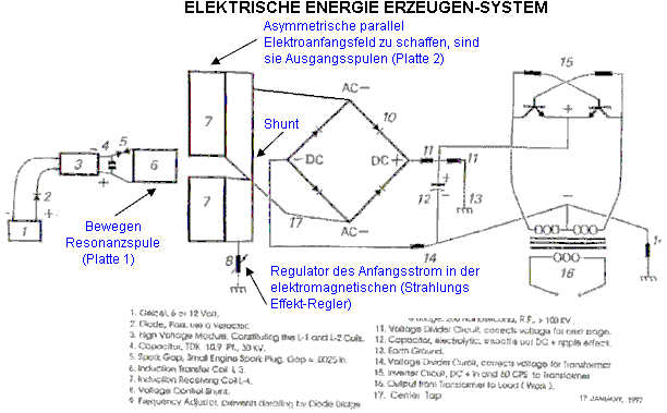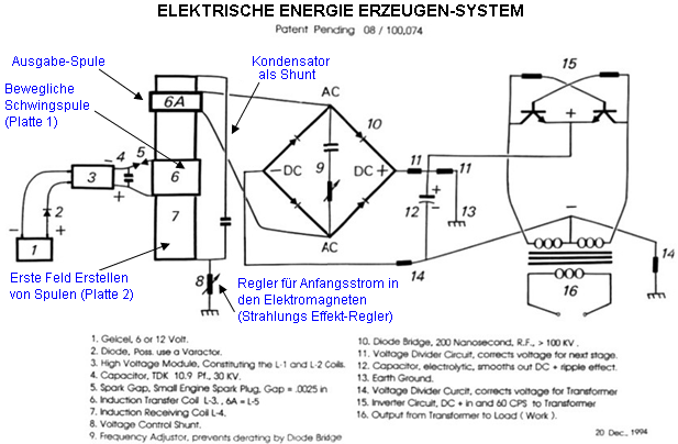 Wie Sie wahrscheinlich wissen, kommerzielle Transformatoren sind und im Handel erhältlichen Elektromotoren sind in symmetrischer Weise gewickelt, die ihnen ihre eigene Funktion zu widersetzen zwingt - ein bisschen wie immer mit einem Auto, dessen Batterie ein Druckstart ist erschöpft, aber mit zwei Personen an der vorne schieben rückwärts und zwei Personen auf der Rückseite drängen nach vorn. Das ist so dumm, dass es schwierig ist, zu glauben, dass jemand würde es tun, aber das ist genau, wie Motoren und Transformatoren sind 'entworfen' und gebaut. Je größer die Ausgangsleistung, desto mehr wird die Ausgangsleistung wendet sich gegen die Eingangsleistung, was bedeutet, dass Sie immer größere Eingangsleistung aufweisen, um müssen zu mehr Leistung zu bekommen. Das ist, was Lenz Gesetz geht. Es muss nicht so sein. Wenn Sie ein nicht-symmetrische Transformator wie Thane Heins bauen getan hat, ist, dass Wirkung fehlt und die Ausgangsleistung vierzig Mal größer ist als die Eingangsleistung sein kann, wie durch Bank Testergebnisse gezeigt. Es ist nicht so einfach, eine vollständig nicht-symmetrischen Transformator oder Motor, aber es gibt auch andere Möglichkeiten, das Problem zu nähern, zu bauen. Vladimir Utkin produziert hat die folgende Darstellung erklärt die Ins und Outs einer alternativen Art und Weise mit dem Problem zu tun haben. Einige Leser können auch feststellen, es ist ein bisschen technisch in den späteren Stadien, aber die ersten Informationen von jedermann verstanden werden: ![]() Einführung Es ist gut bekannt, dass orthogonale Spulen, das heißt Spulen rechtwinklig zueinander, interagieren nicht. Dies ist in Fig. 1 veranschaulicht . In den folgenden Diagrammen wird der Buchstabe "U" Spannung darstellt, der Buchstabe "I" steht für Strom und L steht für eine Spule aus Draht: ![]() Fig.1 Diese orthogonalen Spulen nicht miteinander in Wechselwirkung. Das bedeutet, dass, wenn eine oszillierende Spannung an die Eingangsspule L1 angelegt ist, gibt es absolut keine Spannung in der Spule L2 induziert wird. Es macht keinen Unterschied, ob die Spulen mit Luftkern sind oder wenn sie einen Eisenkern haben. Mit anderen Worten kann angenommen werden, dass die Spulen in Luft isoliert aufgehängt sind. Dies ist eine wohlbekannte Tatsache, aber es gilt als von geringem Interesse zu sein, wie es angenommen wird, eine triviale Angelegenheit zu sein - es ist nicht. Wenn wir die Spulen L1 und L2 interact machen können, so dass wirkliche Macht kann, ohne dass entnommene Leistung aus der Spule L2 extrahiert werden, welche die Eingangsspule L1, dann ist das eine ganz andere Sache und niemand, dass als "trivial" abtun würde !! Daß sehr wünschenswerte Situation kann in der Tat hervorgebracht werden, wie durch Zugabe von zwei Permanentmagneten in Fig.2 gezeigt, M1 und M2, einander auf der Achse der Spule L1 gegenüber, und der Schalter von der Stromversorgung der Spule L1 mit der Spannung mit Strom zum Antreiben und dafür, fügen wir den Kondensator C und die Spule L1 in Resonanz betrieben werden, wo die eigentliche Magnetfeld in den Umgebungsraum ist. Hier ist der Eingangsstrom bei einem Minimum und das magnetische Ausgangssignal maximal ist. Wir fügen eine Last L2 an die Spule, wie sie nun in der Lage ist, Ausgangsstrom zur Verfügung zu stellen: ![]() Fig.2 Orthogonal Spulen mit gebrochenen Symmetrie in Wechselwirkung treten. In Fig.2 stellen die Südpole der Magnete einander, aber die Anordnung funktioniert auch, wenn sie so verändert, daß die Nordpole einander zugewandt sind. Ich schlage vor, dass das Problem gelöst ist, das heißt, die Last RL wirkliche Macht erhält, die auf der Resonanz der Eingangsschaltung keinen Einfluss hat. Ich werde nun versuchen, zu erklären, wie und warum diese Konfiguration das Feedback Problem löst. In Fig. 1, wenn zwei Magnete (M1 und M2), hinzugefügt werden, wie mit den gleichen Polen einander zugewandt entlang der Achse der Spule L1 dargestellt, dies fügt ein Magnetfeld, das auf die Achse der Spule L1 fließt senkrecht und umfasst einige oder alle, der Spule L2. Das ändert alles, da die magnetischen Fluktuationen in der Spule L1, die durch die Magnete und die Ursachen induzierte Spannung und Strom in der Spule L2 erzeugte Magnetfeld ändern können. Dafür haben wir die "Bewegen" Magnetfeld, das durch Zugabe von Wechselstrom an die Spule L1, die sich in alternierenden magnetischen Flusses der Spule L2, die durch. Strom und Spannung werden in der Ausgangsspule L2 induziert. Dies wird in dem leicht vereinfachter Darstellung gezeigt. Fig. 3, welche die Bewegung des Magnetfelds abhängig davon, ob oder nicht der Oszillator antreibt Spule L1 ergänzt oder wendet sich gegen das Magnetfeld durch den Permanentmagneten erzeugten. ![]() Fig. 3. Prinzip Erklärung der asymmetrischen Interaktion der orthogonalen Spulen aufgrund der Bewegung des Feldes. Die Resonanzspule L1 wird verwendet, um ein oszillierendes Magnetfeld zu erzeugen, aber das "Bewegen" - Feld auch Permanentmagnete erstellt werden können, um sie in den Spalt zwischen zwei entgegengesetzt gerichteten Magneten durch die physikalische Bewegung dieser zusätzlichen Magneten, wie gezeigt in Fig. 4 einzuführen. Die sich bewegenden Magneten wäre auf einem Rotor und die Pole der Rotormagnete würden abwechselnd N, S, N, S ... ![]() Fig.4 Erläuterung des Prinzips durch die Verwendung von Permanentmagneten. Folgende Fehler sind möglich bei der Interpretation der beschriebenen Wechselwirkungen: 1. Nutzbarmachung Resonanzenergie an die Last. 2. Die Nutzung der Magnetfeldenergie an die Last. Weder Interpretation ist wahr. Das Grundprinzip zeigt, dass die Energie von jedem Resonanzsystem nicht "angezapft werden", weil das zu tun die Resonanz selbst zerstören würde. Auch ist die Energie des magnetischen Feldes nicht benutzt wird, da die Magnetisierung der Magnete wird in keiner Weise verändert oder verringert. Die vernünftigste Interpretation ist von der Position der Doppelenergiesys