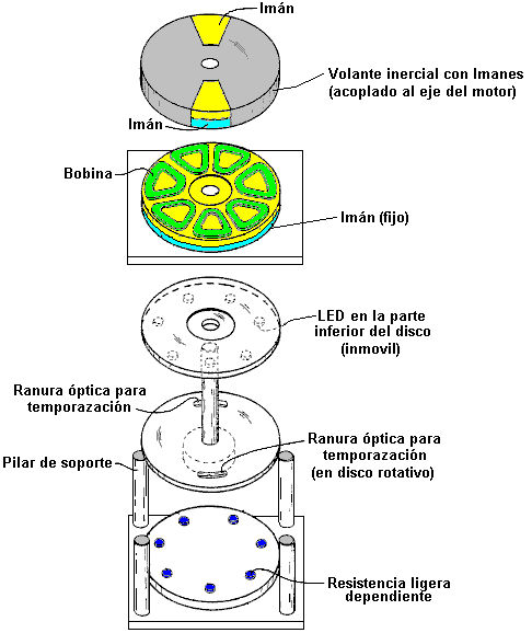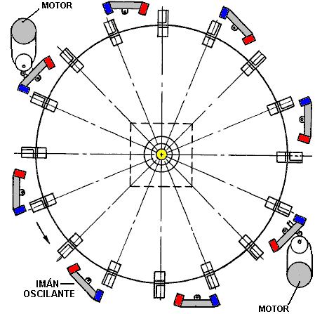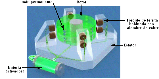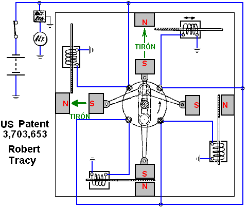 Capítulo 1: Poder de imán ¿Qué es un imán permanente? Si tomas un trozo de conveniente material como acero 'suave', ponerlo dentro de una bobina de alambre y conducir una fuerte corriente eléctrica a través de la bobina, pues convierte el acero en un imán permanente. ¿Qué longitud de tiempo necesita el corriente en la bobina para hacer el imán? Menos de una centésima de segundo. ¿Cuánto tiempo el imán resultante puede soportar su propio peso contra la gravedad? Años y años. ¿No te parece extraño? Ver cuánto tiempo usted puede apoyar el peso de su propio cuerpo contra la gravedad antes de que te cansas. ¿Años y años? No. ¿Meses, entonces? No. ¿Días, incluso? No. Si no puedes hacerlo, cómo puede el imán? ¿Sugiere que un solo pulso por minuto una fracción de segundo puede bombear suficiente energía en la pieza de acero para poder durante años? Eso no parece muy lógico, ¿verdad? Entonces, ¿cómo funciona el imán hacerlo? La respuesta es que el imán no en realidad ejerce ningún poder en absoluto. De la misma manera que un panel solar no pone ningún esfuerzo en la producción de electricidad, la energía de un imán fluye desde el medio ambiente y no desde el imán. El pulso eléctrico que crea el imán, alinea los átomos dentro del acero y crea un magnético "dipolo" que tiene el mismo efecto que el eléctrico "dipolo" de una batería. Se polariza el ambiente cuántica que lo rodea y causa grandes corrientes de flujo de energía alrededor de sí mismo. Uno de los atributos de este flujo de energía es lo que llamamos "magnetismo" y que permite el imán para pegarse a la puerta de su refrigerador y desafiar la gravedad durante años. ![]() Foto de ShenHe Wang El Motor/Generador de Imán Permanente de ShenHe Wang La foto anterior, es la de un hombre chino, ShenHe Wang, que ha diseñado y construido un generador eléctrico de cinco kilovatios de capacidad. Este generador es alimentado por imanes permanentes y no utiliza combustible para funcionar. Usa partículas magnéticas suspendidas en un líquido. Debería haber sido expuesto al público en la Expo Mundial de Shanghai del 1 de mayo al 31 de octubre del 2010, pero el gobierno chino intervino y no se lo permitió. En su lugar, sólo le permitieron mostrar una versión del tamaño de un reloj de pulsera (ver la imagen más adelante), que demostraba que el diseño funcionaba, pero que no sería de ningún uso práctico en la generación de energía. ![]() Prototipo del Motor de ShenHe Wang mostrado en la Expo Mundial de Shanghai 2010 (Izquierda) La mayoría de los inventores no parecen darse cuenta de esto, pero casi todos los gobierno se oponen a que la gente en general pueda disponer de cualquier dispositivo serio de energía libre (aunque esos gobiernos están felices de poder usar esos dispositivos para su beneficio). Su objetivo es dominar y controlar a la gente común y un factor importante para esto es controlar el suministro y el costo de la energía. Un segundo método utilizado en todas partes es el de controlar el dinero, y sin que casi nadie lo note, los gobiernos logran quitarle cerca del 78% de sus ingresos a la gente, sobre todo por métodos ocultos como impuestos indirectos, tasas, tarifas, etc, etc, etc. Si quieres saber más sobre el motor de Shenhe Wang, visite www.yourstrawman.com, pero por favor entienda que la razón por la que los dispositivos de energía libre no están a la venta en la tienda de la esquina, tiene que ver con el control político y los intereses creados de tipo financiero, y no tiene nada que ver con la tecnología. Todos los problemas tecnológicos han sido resueltos, literalmente miles de veces, pero los beneficios han sido suprimidos por aquellos que están en el poder. Dos de los generadores de 5 kilovatios del Sr. Wang, completaron con éxito en abril del 2008 los 6 meses del período de "Confiabilidad y Seguridad" definido como obligatorio por el gobierno chino. Un gran consorcio chino ha comenzado a comprar en China, plantas de generación de electricidad que se alimentan con carbón, para remodelarlas con versiones grandes del Generador no contaminante de Wang. Parte de la información sobre la construcción del motor de Wang está disponible aquí ![]() Aspecto físico de los elementos del Motor de ShenHe Wang El motor consta de un rotor que tiene cuatro brazos y que se encuentra en un recipiente poco profundo de líquido que tiene una suspensión coloidal de partículas magnéticas en él (Ver diagramas más adelante). Hay una patente sobre el motor, pero no está en inglés y lo que revela no es de mayor importancia. La intención del Sr. Wang era a regalar el diseño de su motor de todos los países del mundo e invitamos a fabricarlo ellos mismos. Esta actitud muy generosa, no tiene en cuenta los muchos intereses financieros en cada país, de los cuales, el del gobierno respectivo seguro será uno de los mayores, y se opondrá a la introducción de cualquier dispositivo que se alimente con energía libre y que, por consiguiente, vaya a destruir los flujos continuos de ingresos para ese gobierno. Incluso es posible que a usted no le permitan ir a China, comprar uno de esos motores y traerlo consigo para usarlo en su casa. No es fácil de configurar los imanes permanentes en un patrón que pueda proporcionar una fuerza continua en una sola dirección, ya que suele haber un punto en el que las fuerzas de atracción y repulsión se equilibran, generando así una posición en la que el rotor se frena y permanece detenido. Hay varias maneras de evitar que esto ocurra. Es posible modificar el campo magnético desviándolo mediante un componente de hierro dulce. Hay muchos otros diseños de motor de imán permanente, pero antes de mostrar algunos de ellos, vale la pena comentar cual es el trabajo útil que puede realizar el eje de un motor de imán permanente. Con un motor de imán permanente hecho en casa, donde se usaron componentes baratos y la calidad de la