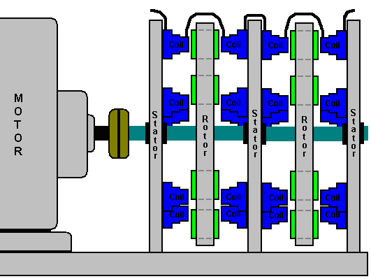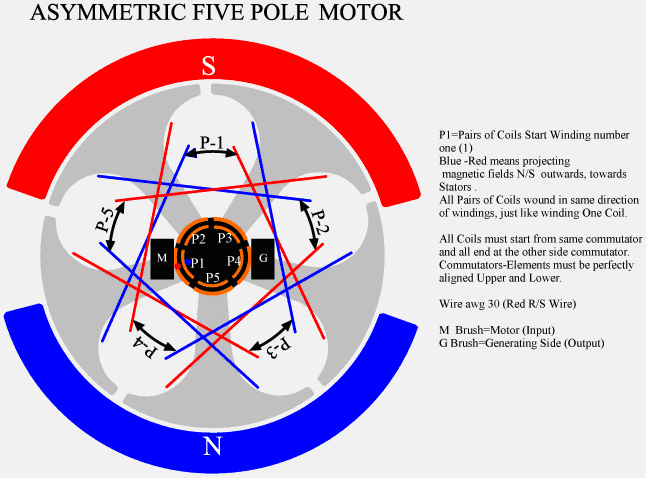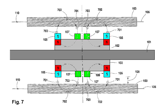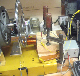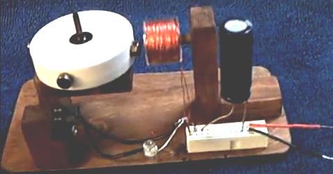 If you want the original drawings and some explanation on the operation of the motor, then two publications from the late Robert Adams can be bought from www.nexusmagazine.com where the prices are quoted in Australian dollars, making the books look much more expensive than they actually are. Here is a really impressive collection of well-informed practical material on building and using an Adams motor with details of sensors and how they work, core materials and their performances and how to locate the "sweet spot" - very highly recommended web site. ![]() Tewari Paramahamsa’s Self-Powered Generator In April 2015, the famous 80-year old Indian scientist Tewari (www.tewari.org) well-known for his use of the homopolar generator to produce large volumes of hydrogen for commercial use, announced his successful 20-kilowatt, self-powered generator design and his corresponding patent application, shown below, was published. Here is a picture of a prototype, which is held together by four spring-loaded straps. The coils are held in place inside the frame and permanent magnets are spun inside those frames: ![]() The principle of operation is simple and elegant. The power output conductors are arranged in such a way so that half of the magnetic field generated by the output current (that is, the magnetic field which opposes the motor spinning the rotor) is in one direction and the remaining half is in the opposite direction, cancelling the effect of the first half. The result is an arrangement where increasing power output has no noticeable effect on the input power. In other words, the Lenz Law drag effect has been effectively overcome. Tewari is due our warmest congratulations for what he has achieved. Being sensible, Tewari does not mention anything about 20 kilowatts of self-powered output, but instead, puts the design forward as being an improvement in the design of existing generators – and it is most certainly that. Here is his patent application: Abstract: A reduced reaction alternating current generator including a hollow stator core, a cylindrical rotor within the stator, a freely rotating shaft coupled to the rotor, a first set of magnets in which the south pole of each magnet is coupled to the surface of the rotor and the north pole of each magnet is facing the inner surface of the hollow stator core, a second set of magnets in which the north pole of each magnet is coupled to the surface of the rotor and the south pole of each magnet is facing the inner surface of the hollow stator core, and a set of silicon steel pieces coupled to the outer surface of the rotor comprised of individual silicon steel pieces positioned adjacent to and longitudinally in line with each individual magnet within the first set of magnets and each individual magnet within the second set of magnets. Description: BACKGROUND OF THE INVENTION Michael Faraday discovered the principles of electromagnetic induction and invented the rotating electrical generator in 1832. The generator was known as the Unipolar Generator, Acyclic Generator and Disk Generator. This generator operated on the principle that voltage is induced in a conductor in relative motion to an external magnetic field. Moreover, when the conductor is configured as a closed circuit and is in relative motion with an external magnetic field, a current will be induced to flow through that circuit. The induced current itself will generate an induced magnetic field surrounding the conductor. The direction of the induced current is determined by Fleming's right hand rule which states that the magnetic field produced by the current induced in the conductor will repel the external magnetic field which induced the current in the conductor. As such, the induced magnetic field surrounding the conductor and the external magnetic field repel each other so as to create a torque on the conductor which opposes that conductor's movement relative to the external magnetic field. Faraday's generator and all subsequent generators have in common, the production of this counter or back-torque. The efficiency of an electrical generator is governed by mechanical and electrical limitations. The mechanical limitations include windage and friction of the generator's rotor and bearings. The electrical limitations include electrical impedance within the windings of the generator as well as the above-described counter or back-torque. A prime mover is attached to a generator so as to cause the rotation of the generator's rotor resulting in the production of either a direct or an alternating current within the generator's conductor and a back-torque which counters the rotation caused by the prime mover. The prime mover may be powered by steam, wind or water. Therefore, the problem with standard generators is that their efficiency is limited due to back-torque generated as a result of current induced within the generator's conductor windings. DEFINITIONS The following definitions are provided for convenience and are not to be taken as a limitation of the present invention. Fleming's Left Hand Rule refers to the effect that when a current flows in a conductor and an external magnetic field is applied across that current flow, the conductor will experience a force perpendicular to both the external magnetic field and the direction of the current flow. The Left Hand Rule can be used to represent three mutually orthogonal axes using the thumb to represent a mechanical force, the first finger to represent a magnetic field and the middle finger to represent the current, each finger positioned at right angles to each other. Synchronous generator refers to an electrical generator which turns at the same speed as the drive mechanism, also known as the synchronous speed. A synchronous generator produces an alternating current and voltage at a frequency proportional to the rotation speed and to the number of excitation poles internal to the generator. Asynchronous generator refers to an alte