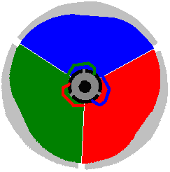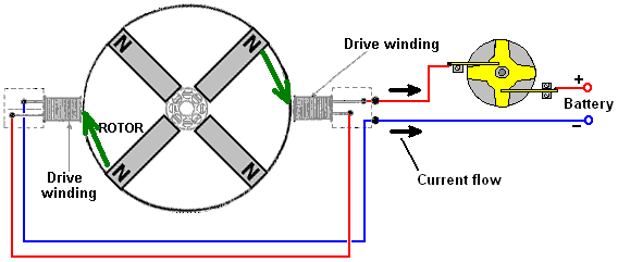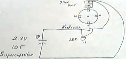 In this particular arrangement, five of the coils gather energy while ten provide the drive. For the sake of simplicity, the diagram shows the five collection coils adjacent to each other and while that would work, the wheel is better balanced if the drive coils are evenly spaced out around the rim. For that reason, this switching would actually be selected to give five sets of two drive coils followed by one pick-up coil as that gives a perfectly balanced thrust on the wheel. The two diagrams above are shown separately in order to make it clear how the drive switching and the power pick-up switching are arranged. The full design arrangement and the balanced switching are shown in the following diagram which indicates how the full design is implemented on this particular implementation of the wheel design. The sensor can be a coil feeding a semiconductor switching circuit, or it can be a magnetic semiconductor called a Hall-effect device which can also feed a semiconductor circuit. An alternative would be a reed switch which is a simple mechanical switch encased in an inert gas inside a tiny glass envelope. Suitable switching circuits are described and explained in chapter 12 of this eBook.