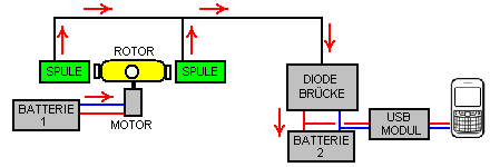 Denis Sabourin hat einen Generator gebaut, der gut funktioniert, dass er unendlich läuft, selbstbetrieben, während er ein Handy über Nacht auflädt. Die Konstruktion ist sehr einfach. Das Herz des Generators ist ein kleiner Motor mit einem gelben Plastikschwimmer von einem Fischernetz geklebt, um einen leichten Rotor zu bilden, der vier Magneten hat, die an den Schwimmer angebracht sind: