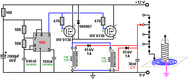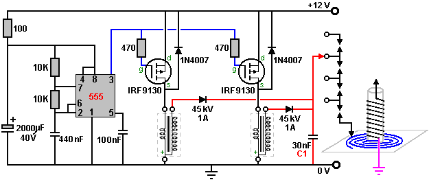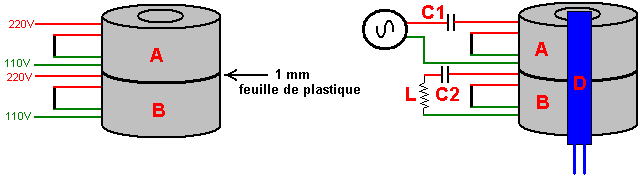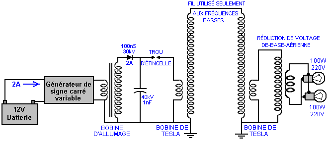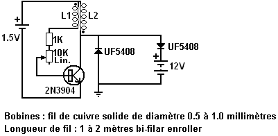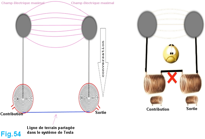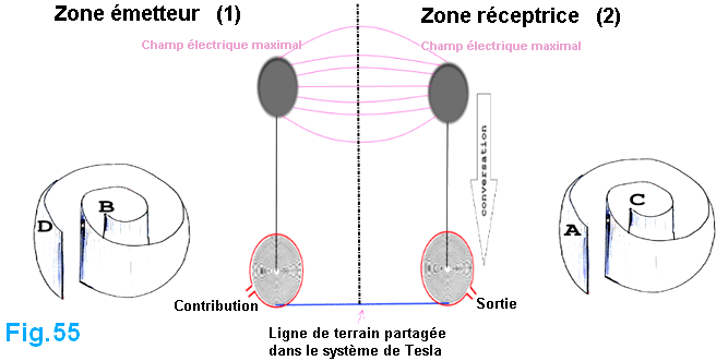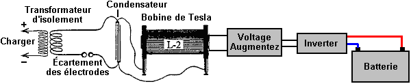 Je reçois tous ces en basse tension d'un générateur de signal, comme je n'ai pas fini de construire un dispositif de haute tension encore, même si je suis déjà à travailler dessus. Mais je pense qu'il est sûr pour moi de croire que ces résultats sont solides et assez bon à partager. Voici une image de transformateur électrique 593 138 brevets de Tesla: ![]() On voit que c'est exactement la même que la configuration de Nick Giannopoulos, sauf que Tesla utilise un générateur dans ce diagramme, je crois que par souci de simplicité. Tant que le générateur génère la fréquence exacte du courant, il fonctionne parfaitement. Le secondaire sur le côté énergisant est une bobine de quart d'onde, et à la prise en charge côté est une autre bobine de quart d'onde. La tension la plus élevée est à l'extrémité de ces deux enroulements secondaires et leur fil de connexion, et zéro tension est au tournant très extérieur de chacune des bobines. Maintenant, si nous changeons la forme spirale à hélicoïdale, il devient mise en place de Nick. Prenons ceci encore, on peut raccourcir le fil de connexion jusqu'à ce que les deux bobines secondaire deviennent en fait une grosse bobine, puis, lorsqu'il est combiné, c'est une bobine de demi-onde et la tension la plus élevée est au point milieu de celui-ci. Il devient maintenant le dispositif de Don Smith et de Tariel Kapanadze, comme ceci: ![]() Étant donné que l'énergie revient également sur le côté énergisant, Kapanadze ajoute une autre bobine pick-up bien sous la bobine primaire énergisante. Cet arrangement, selon moi, est très difficile à reproduire, parce qu'il est donc très difficile à régler, pour plusieurs raisons: