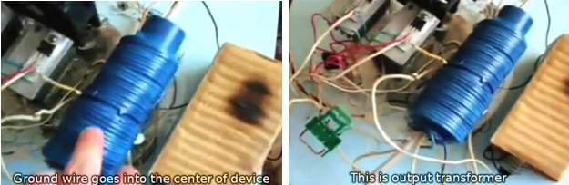Don Smith a en effet dit quelque chose d'utile. Il a dit que nous pouvons faire le secondaire bobine de taille fixe et faites ensuite glisser la bobine primaire à l'intérieur. Bien fondée sur des résultats expérimentaux, ce processus coulissant modifie la longueur réelle et apparente de la bobine secondaire. En général, nous devons évaluer la taille de la bobine en comptant les tours entre le virage bien sous la bobine primaire énergisante, pour le virage à droite sous la bobine pick-up, cette section est le secondaire réels et cette section devrait renfermer une bobine demi-onde résonner, le reste de la bobine, il est là ne rien faire. Mais ce n'est pas que simple, les bornes de la bobine secondaire doivent se connecter à la terre ou à une grande sphère, ou une bobine de Tesla typique secondaire avec la même fréquence de résonance de quart d'onde. Sinon le signal rebondira et reculer dans la bobine produisant un gâchis ou en générant un arc et cela est mauvais pour la performance, et c'est pourquoi une prise de terre solide est souhaitable. Et c'est le véritable sens quand Don dit “glisser la bobine primaire pour faire la mise au point”. Donc, retour au dispositif Kapanadze, que la bobine énergisante couvre une grande partie de la bobine secondaire, faisant la longueur efficace de la bobine secondaire beaucoup plus courte, encore une fois, stimuler la fréquence de fonctionnement de l'appareil encore plus élevé. Pour un tel dispositif, il est impossible à tune sans un générateur de signal de 20Mhz, un oscilloscope et la compréhension complète du comporte d'une onde longitudinale. Pour commencer, je ne sais même pas où se pour connecter la sonde oscilloscope ou quel terminal doit se connecter sur le terrain, je suis très chanceuse d'être en mesure de regarder la vidéo de Eric Dollard, et je recommande à tout le monde de regarder cette vidéo, le regarder encore et encore, aussi beaucoup d'autres vidéos éducatives d'Eric. Beaucoup de choses fondamentales sur le comporte d'une onde longitudinale sont expliqués là, c'est comme une carte au Trésor couvert de poussière dans un coin tranquille d'une bibliothèque ouverte. La vidéo de Ming démontre qu'il est dit ici. Pour la vidéo, il utilise une bobine d'entrée, une bobine de surveillance et un enroulement secondaire, dont chaque extrémité est reliée à la terre à l'aide de connexions à la terre séparée ![]() Ming également les commentaires : Pour le montage dans la vidéo, la bobine secondaire est enroulée à l'aide de fil de cuivre émaillé de diamètre 1mm, 365 tourne autour d'un tube de PVC de diamètre 160mm. La longueur totale de bobine est de 39,5 cm. La longueur totale du fil du secondaire est environ 182m. La matière blanche est plusieurs couches isolantes de colle pour éviter un arc électrique entre les spires adjacentes lorsque vous travaillez avec une haute tension. La bobine primaire et la bobine pick-up sont enroulés avec câble audio qui est plus de 4 millimètres carrés en coupe transversale. La bobine primaire a 2 fils, 2 tours. La bobine de sortie a 4 fils et qu'un seul tour. J'utilise ce fil épais, parce que je vais utiliser ces bobines pour mon projet de haute tension. Pour une tension faible expérimenter comme montré dans la vidéo, il serait tout à fait adéquat d'utiliser le fil de cuivre ordinaire de 1 millimètre carré section transversale (SWG 18 ou AWG #17). Si la longueur de fil secondaire est réduite, alors que la fréquence de résonance sera plus élevée, mais le principe reste le même. Si seulement la basse tension est destiné à être utilisé - peut-être juste pour étudier la nature des ondes longitudinales, puis la bobine secondaire peut être faite en utilisant un fil très mince de fil de cuivre émaillé de diamètre 0,3 à 0,4 mm (swg 30 à swg 27), qui vous coûtera beaucoup moins. J'ai fait mes bobines avec du fil épais parce que j'ai l'intention de continuer à utiliser des tensions élevées. Un développeur Russe a allumé une grande ampoule avec un circuit de style Kapandze auto-alimentée: ![]() ![]() ![]() ![]() ![]() La vidéo ici montre l'ampoule auto-alimenté (il a besoin d'une prise de terre): ![]() Un développeur Chinois a répliqué le dispositif principal de Don Smith avec beaucoup de succès. En utilisant une entrée de 12V à 1. 2 a (15 watts), il est l'éclairage dix ampoules de 100 watts à un haut niveau de luminosité. La langue chinoise vidéo concernant ceci peut être vu à: ici Voici quelques-unes des images de cette vidéo : ![]() ![]() ![]() ![]() ![]() Le circuit utilisé est montré ici: ![]() ![]() Par la suite, un post sur le forum par un homme mexicain dit: Bonjour 'Salty Citrus', J'aime votre vidéo!! Je ne peux vraiment apprécier la quantité de travail que vous et votre groupe avez passé à développer et à perfectionner le dispositif d'énergie libre Don Smith / Tesla. Merci pour la poursuite d'une si noble cause. Je suis intrigué par votre réseau de commutation en utilisant le CREE CMF20120. Comment avez-vous câblez le MOSFET? Vous avez utilisé une UCC3825A Pulse modulateur de largeur d'horloge du signal -> MOSFET -> Gate Drive transformateurs (x3) -> transistors push-pull -> CMF20120? Avez-vous rencontré le CMF20120 en série? Désolé pour tant de questions, mais je suis totalement impressionné par votre ingéniosité, et entièrement d'accord que votre solution à l'état solide a incontestables avantages sur éclateur classique de Tesla. Je serais honoré si vous pouviez prendre le temps de répondre à mes questions. J'aimerais reproduire vos circuits. Je vous souhaite la meilleure des chances dans vos démarches. Cordialement, 'Lost_bro' (un bout du monde) Re: ‘Lost_bro’ Merci pour le compliment. Le succès fait honneur à mon équipe. Merci à mon équipe. Dans l'affirmative, le CMF20120 exécuter en série dans cette solution. La tension d'équilibre entre chaque MOSFE
