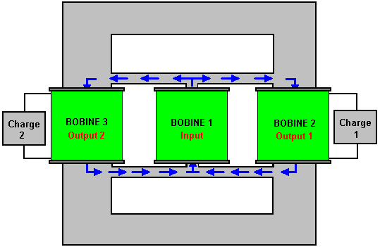 La Charpente Magnétique de Charles Flynn. Un autre appareil de ce type vient de Charles Flynn. La technique d'appliquer des variations aimantées au flux aimanté produite par un aimant permanent est couverte dans les brevets de Charles Flynn qui est inclus dans l'Appendice en détail. Dans son brevet il montre des techniques pour produire mouvement linéaire, mouvement réciproque, mouvement circulaire et conversion du pouvoir, et il donne un montant considérable de description et explication sur chacun, son brevet principal qui contient cent illustrations. La prenant une candidature au hasard: Il affirme qu'une amélioration substantielle de flux aimanté peut être obtenue de l'usage d'un arrangement comme ceci: ![]() Ici, un cadre du fer doux feuilleté a un aimant permanent puissant placé dans lui est le centre et six bobines sont enroulées dans les places montrées. Le flux aimanté de l'aimant permanent coule les deux côtés du cadre autour. ![]() Les détails brevetés pleins de ce système de Charles Flynn sont dans l'Appendice, en commençant à page A - 338. Lawrence Tseung a produit un dessin subtil qui utilise des principes très semblables récemment. Il amène un cadre aimanté de style semblable et encarts un aimant permanent dans un des bras du cadre. Il applique alors DC tranchant bat à une blessure des bobines sur un côté du cadre et ôte l'énergie d'une blessure de la bobine sur l'autre côté du cadre. Il montre trois modes d'exploitation séparées pour les appareils comme suit: ![]() Lawrence fait des remarques sur trois arrangements possibles. Le premier sur montré au-dessus est l'arrangement du transformateur commercial standard où il y a un cadre fait de shims du fer étanche pour couper les " courants du remous " qui circuleraient à l'intérieur du cadre à angles droits au battre aimanté utile quels liens les deux bobines autrement autour sur les côtés opposés du cadre. Comme est très largement connu, ce type d'arrangement n'a jamais un pouvoir de la production plus grand que le pouvoir de l'entrée. Cependant, cet arrangement peut être varié dans plusieurs chemins différents. Lawrence a choisi d'enlever une section du cadre et le remplacer avec un aimant permanent comme montré dans le diagramme dessous. Cela change la situation comme les causes de l'aimant permanentes une circulation continue de flux aimanté le cadre très considérablement autour avant que tout voltage alternant soit appliqué à la bobine de l'entrée. Si le battant pouvoir de l'entrée est appliqué dans la direction mal comme montré ici, où les pulsations de l'entrée produisent flux aimanté qui s'oppose au flux aimanté qui coule déjà dans le cadre de l'aimant permanent, alors la production est réellement inférieure qu'il aurait été sans l'aimant permanent. ![]() Cependant, si la bobine de l'entrée a battu afin que le couler courant dans la bobine produit un champ aimanté qui renforce le champ aimanté de l'aimant permanent il alors est possible pour le pouvoir de la production pour dépasser le pouvoir de l'entrée. Le " Coefficient de Performance " ou " COP " de l'appareil est le montant de pouvoir de la production divisé par le montant de pouvoir de l'entrée que l'utilisateur a pour mettre dans pour faire l'appareil opérez. Dans cet exemple la valeur COP peut être plus grande qu'une: ![]() Comme il renverse des puristes, peut-être il devrait être mentionné que pendant qu'une vague carrée est entrée le signal est appliqué à l'entrée de chacun des illustrations précitées, la production ne sera pas une vague carrée bien qu'il soit montré que chemin pour clarté. Au lieu, l'entrée et la production enroule converti la vague carrée à une vague du sinus de basse qualité que seulement devient une vague du sinus pure quand la fréquence de la pulsation exactement égaux la fréquence résonnante du production enrouler. Les oscilloscope affichent montré ici est un waveform du pouvoir de la production typique qui a presque 390,000 de ces pulsations par seconde. ![]() Il y a une limitation à ceci comme le montant de flux aimanté que tout cadre particulier peut porter est limité par la matière de qu'il est fait. Le fer est la matière la plus commune pour cadres de ce type et il a un point de la saturation très défini. Si l'aimant permanent est si fort qu'il cause saturation de la matière du cadre avant de l'entrée battre est appliqué, alors il ne peut pas y avoir tout effet à tout de DC positif qui bat comme montré. C'est seulement bon sens mais il le fait clarifier que l'aimant choisi ne doit pas être trop fort pour la dimension du cadre, et pourquoi ce devrait être. Comme un exemple de ceci, un des gens qui reproduisent le dessin de Lawrence a trouvé qu'il n'a pas obtenu tout gain du pouvoir à tout et donc il a demandé le conseil à Lawrence. Lawrence l'a recommandé omettre l'aimant et voir ce qui s'est passé. Il a fait ceci et immédiatement a obtenu la production standarde, en montrant que son arrangement de l'entrée et sa production qui mesurent le système les deux ont parfaitement bien travaillé. Il a point sur lui alors que le tas de trois aimants qu'il utilisait dans le cadre soit juste trop fort, donc il a réduit le tas à seulement deux aimants et immédiatement a obtenu une performance de COP = 1.5 (50% plus de production du pouvoir que le pouvoir de l'entrée). Le Transformateur Bi-Toroidal de Thane Heins. Thane a développé, testé et déposé un brevet pour un arrangement du transformateur où la puissance de sortie de son prototype peut être trente fois supérieure à la puissance d'entrée. Il y parvient en utilisant une double noyau de transformateur toroïdal figure-de-huit. Son CA2594905 de brevet canadien est intitulé "Bi-toroidal transformateur" et date du 18 Janvier 2009. Le résumé dit: L'invention fournit un moyen d'accroître l'efficacité du transformateur-dessus de 100%. Le transformateur es
