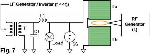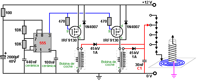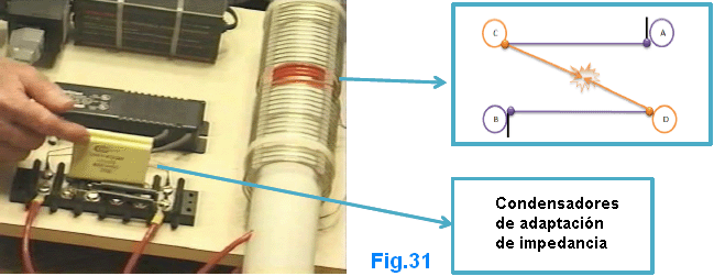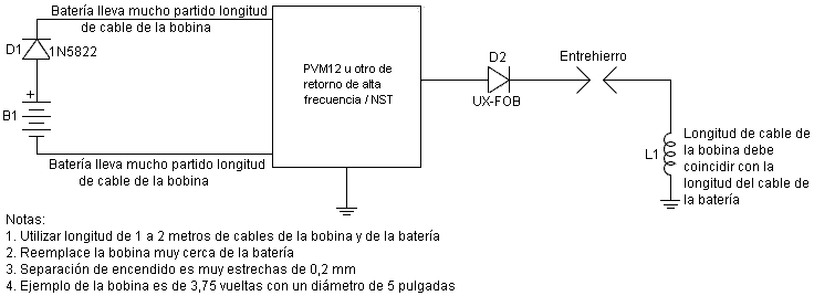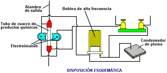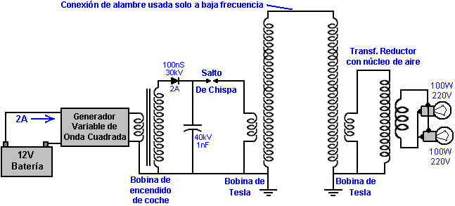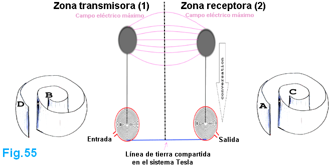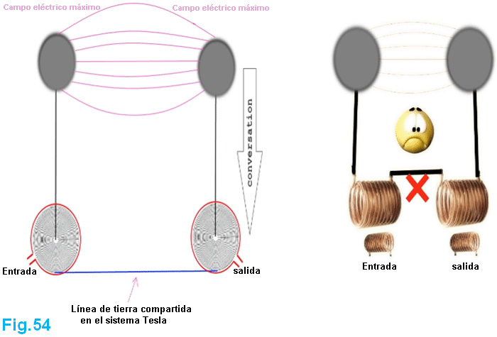 Tengo todos éstos por baja tensión de un generador de señal, como no he terminado de construir un dispositivo de alto voltaje, aunque ya estoy trabajando en ello. Pero creo que es seguro para mí creer que estos resultados son sólidos y lo suficientemente bueno para compartir. Aquí está una imagen del transformador eléctrico 593.138 patente de Tesla. ![]() Podemos ver es exactamente igual a la configuración de Nick Giannopoulos, excepto que Tesla es usar un generador en este diagrama, creo que por razones de simplicidad. Mientras el generador está generando la frecuencia exacta de la corriente, que funciona bien. El secundario al lado energetizante es una bobina de cuarto de onda, y en el pick-up es otra cuarto-agite la bobina. El voltaje más alto está en el otro extremo de estas dos bobinas secundarias y su cable de conexión, y cero voltaje está a la vuelta muy afuera de cada una de las bobinas. Ahora si cambiamos la forma espiral de la bobina al helicoidal, se convierte en configuración de Nick. Vamos a tomar esto más, que puede acortar el cable de conexión hasta las dos bobinas secundarias se convierten en realidad en una bobina grande, entonces, cuando se combina lo es una bobina de media onda y el voltaje más alto está en el punto medio de él. Ahora se convierte en dispositivo de Don Smith y de Tariel Kapanadze, así: ![]() Porque la energía también va a volver desde el lado energetizante, Kapanadze agrega otra bobina de recogida justo debajo de la bobina primaria energetizante. Este acuerdo, creo que es muy difícil replicar, porque es muy difícil afinar, por varias razones: