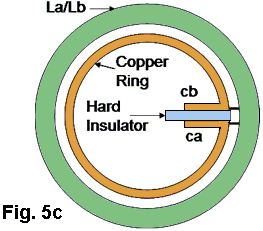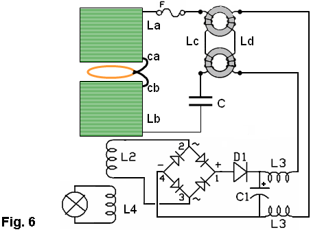 Don Smith dijo en efecto algo útil. Dijo que podemos hacer el secundario un tamaño fijo de la bobina y luego deslice la bobina primaria en su interior. Bueno basado en resultados experimentales, este proceso de deslizamiento está alterando la longitud efectiva real de la bobina secundaria. En general, deberíamos evaluar tamaño bobina contando las vueltas de la vuelta justo debajo de la bobina primaria energetizante, a la vuelta justo debajo de la bobina de la recogida, esta sección es la secundaria real y esta sección debe ser una bobina de media onda resonate, está el resto de la bobina ahí sentado sin hacer nada. Pero no es que simple, los terminales de la bobina secundaria deben conectarse a tierra o a una gran esfera, o una bobina de Tesla típico secundario con la misma frecuencia resonante de cuarto de onda. De lo contrario la señal rebotará hacia atrás y hacia delante en la bobina produce un desastre, o generar un arco y esto es malo para el rendimiento, y por una conexión de tierra firme es deseable. Y éste es el verdadero significado cuando Don dice "Deslice la bobina primaria para hacer la puesta a punto". Entonces, volviendo al dispositivo Kapanadze, que la bobina energetizante cubre un área grande de la bobina secundaria, haciendo la longitud efectiva de la bobina secundaria mucho más corta, otra vez, impulsar la frecuencia de trabajo del dispositivo aún mayor. Para dicho dispositivo, es imposible afinarla sin un generador de señal de 20Mhz, un osciloscopio y un completo entendimiento de cómo se comporta una onda longitudinal. Para empezar, no sé donde para conectar la sonda de osciloscopio o la terminal debe conectarse a tierra, soy tan afortunado de poder ver video viejo de Eric Dollard, y recomiendo a todo el mundo a ver ese video, verlo una y otra vez, también muchos otros videos educativos de Eric. Un montón de cosas fundamentales acerca de cómo se comporta una onda longitudinal se explican, está como un mapa del tesoro cubierto en polvo en un rincón tranquilo de una biblioteca abierta. Vídeo YouTube de Ming demuestra lo que está diciendo aquí. Para el video que utiliza una bobina de entrada, una bobina de seguimiento y una bobina secundaria, cada uno de cuyos extremos está conectado a tierra mediante conexiones a tierra separados: ![]() Ming también comenta: Para el montaje en el video, la bobina secundaria se enrolla con alambre de cobre esmaltado de diámetro 1mm, 365 vueltas alrededor de un tubo de PVC de 160mm de diámetro. La longitud total de la bobina es de 39,5 cm. La longitud total del cable de la secundaria es aproximadamente 182m. La materia blanca es varias capas de aislante pegamento para evitar chispas entre vueltas adyacentes cuando se trabaja con alta tensión. La bobina primaria y la bobina de la recogida se hieren con el cable de audio que es más de 4 milímetros cuadrados de sección transversal. La bobina primaria tiene 2 hilos, 2 vueltas. La bobina de la recogida tiene 4 hilos y sólo una vuelta. Utilizo este alambre grueso, porque voy a utilizar estas bobinas para mi proyecto de alta tensión. Una tensión baja de experimentar como se muestra en el video, sería bastante adecuado para uso ordinario alambre de cobre de 1 mm2 sección transversal (SWG 18 o AWG #17). Si se reduce la longitud del cable secundario, entonces la frecuencia resonante será mayor, pero el principio es el mismo. Si sólo baja tensión va a ser usado - tal vez sólo para estudiar la naturaleza de las ondas longitudinales, y la bobina secundaria puede realizarse utilizando alambre muy fino de 0,3 a 0,4 mm de diámetro (SWG 30 a SWG 27) esmaltado alambre de cobre, que le costará mucho menos. Hice mis bobinas con alambre grueso porque pretendo seguir usando altos voltajes. Ha pasado mucho tiempo, pero tengo un poco más de conocimiento sobre el aprovechamiento de la energía radiante. He hecho dos vídeos adicionales: video 1 and video 2 En estos dos videos, explico el método de conversión de la electricidad "fría" de Tesla de la electricidad normal "caliente" por su almacenamiento en un condensador. Creo firmemente que, el método mostrado en el segundo video es exactamente lo que Don está haciendo con su famoso dispositivo, que no tiene la bobina de recogida, sólo dos-parte secundaria. En el primer video, se sustituye la bobina de captación con una lámina sin recubrimiento de cobre, para mostrar a la gente que esto no es un transformador, y por eso, no se basa en la inducción electromagnética. La bobina de recogida es fundamental, una pieza de metal que puede ser electrificado por una onda longitudinal. Puedo quitar el diodo y el condensador, y dejar que la descarga de hojas de cobre a tierra a través de chispas, y dos bombillas incandescentes de 200 vatios ordinarias conectadas en serie, las bombillas son bastante brillante aunque no completamente iluminado, pero bastante brillante en pesar de ser una situación no resonante. Se parecen a esto: ![]() La lámina de cobre se electrifica, y es responsable fluyendo a tierra, y es este mismo proceso que forma el actual. Así que si lo consideramos como un transformador, y consideramos que la bobina de captación como un inductor, y añadimos una carga en dicha "inductor" para formar un circuito cerrado, entonces vamos en la dirección equivocada. Entonces me volví a leer sobre dispositivo Nick Giannopoulos, y me di cuenta de que él dijo que la luz que viene de su bulbo es de color azul y blanco. Después de su diagrama de circuito, creo que es así: ![]() Me sale este tipo de luz cuando me atribuyo la bombilla directamente a la lámina de cobre sin conexión a tierra o cualquier otro cable adicional. Aquí, en esta etapa , no tenemos electricidad "caliente". La luz azul-blanca es causada por el alto voltaje del metal, al que se adjunta la bombilla. La alta tensión no es causado por la inducción, es puramente carga estática sobre la superficie metálica, causada por la electrificación