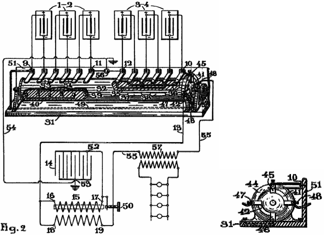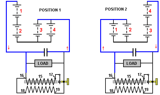 This system produces a constantly increasing supply of electric current flowing through wire 32, and so, switch 34 can be closed, allowing transformer 10 to provide the electrical power to run motor 12 which maintains shaft 44 in continuous rotation, making the system self-powered with no requirement for any form of outside power supply. Additional transformers inserted in wire 32 can be used to power additional equipment. Without employing the high-frequency currents described above, similar results may be attained by means of the arrangement shown at the lower right hand side of the following drawing: ![]() Here, primary winding 50 is connected as shown by the dashed lines, with wires 19 and 20 of the former arrangement, and wire 53 connects to both wire 27 and wire 28. This arrangement has primary winding 50 connected through its end 51 to wire 20 and so is permanently connected to the outer plates of capacitor bank 1, and its other end 52 being connected to wire 35 will be intermittently connected to ground. Wire 53 being connected to wires 27 and 28 will intermittently connect together, the inner plates of capacitor bank 54 and the inner plates of capacitor bank 1. With this arrangement, both ends of the secondary winding 55 are connected through diodes 56 and 57, to wire 53. The outer plates of capacitor bank 54 are permanently connected through primary winding 58 to ground. Both ends of the secondary 59 are connected through diodes 60 and 61, back to wire 53. As a result, if capacitor bank 1 is charged, it drives a current through wire 20 and so, through primary winding 50, and on to ground through wires 35 and 39. This induces current in secondary winding 55 which gets stored in the inner plates of both capacitor bank 54 and capacitor bank 1, as in this moment, the circuit is closed between brushes 29 and 31, and so, wire 53 is connected to wire 32. On receiving these new charges, both capacitor bank 1 and capacitor bank 54 will create new induced electric currents flowing through primary windings 50 and 58. These multiple charging pulses will decrease with time until they are insignificant, at which time, due to the rotation of shaft 44, the connection between brushes 29 and 31 and between brushes 36 and 38 will no longer be maintained, and instead, brushes 18 and 17 will become connected, discharging capacitor bank 1 through primary coil end 50 which is a very strong discharge, charging capacitor bank 54 as wire 53 is now disconnected from wire 32. This, in turn, causes powerful current flow through primary winding 58, further charging capacitor bank 54 which then feeds capacitor bank 1 when shaft 44 rotates further, making the system both self-powered and capable of supplying useful electrical power to other equipment. It should be clearly understood that the use of mercury-vapour converters or cathodic valve diodes as described, are not in any manner indispensable in the system as those devices can be replaced by a suitable arrangement of capacitors which would receive separately, the direct and inverse currents of the secondaries. When a bell is struck just once, it vibrates many times, passing those vibrations to the air and so, making the sound which we hear. The bigger the bell, the slower the vibrations and the lower the pitch of the note which we hear. The same thing happens when a sharp voltage pulse is applied to a coil of wire as just one pulse causes many vibrations in the coil. Like the bell, the frequency of the vibrations depends on the structure of the coil and not on how it is pulsed, although, like a bell, a sharp pulse for a coil or a sharp blow for a bell, produces a greater effect. You will notice here that Carlos uses the resonant ‘ringing’ of an air-core coil to get an energy gain which is then used as positive feedback to further charge a capacitor bank. A single sharp pulse generated by one spark, causes a large number of coil oscillations, each of which contributes output power, producing an energy gain. The ringing frequency is liable to be around 3 MHz. It is also worth noting that with this design, electricity generation can be achieved without any battery and just the manual turning of a Wimshurst electrostatic generator and the initial operation of the commutator shaft 44. Carlos also produced another design, this time working with batteries (although he tended to think in terms of 60-volt battery banks rather than 12-volt batteries) and his patent includes what we tend to call “the Tesla Switch” nowadays. However, instead of switching it rapidly, Carlos uses a switching time interval of one hour. The lower voltage overcomes the need for the switching contacts to be submerged in oil. The problem with lead-acid batteries is that they are only 50% efficient. In practical terms, you only get out of a charged battery half of the current fed into it when it is being charged. So, if you just switch four batteries and power a load that way, the batteries will definitely discharge. In the case of the Electrodyne Inc. staff, they used fast switching and interconnecting diodes which break down when reverse-biased, passing a sharp voltage spike to the batteries at a rate of perhaps, 400 times per second. Benitez, working before electronic components were readily available, chose to use the standard technology of his day - an induction coil which produces at least 10 pulses per second, and through a step-up transformer winding on the induction coil, feeds power to both the load and the drive battery, using an arrangement like this: ![]() System for the Generation of Electric Currents I, Carlos F. Benitez, Civil Engineer, 141 Ocampo Street, Guadalajara, Mexico, do hereby declare the nature of this invention: The invention which forms the object of this Patent of Addition, relates to new improvements in the system for the generation of electric currents, described in the main patent No. 17,811 and in the patent of addition No. 5591, filed 14th April 191