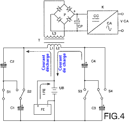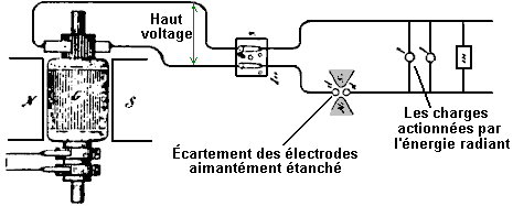 Ce système produit une alimentation en constante augmentation d'un courant électrique circulant à travers fil 32, et ainsi, le commutateur 34 peut être fermée, ce qui permet transformateur 10 pour fournir la puissance électrique pour exécuter moteur 12 qui maintient l'arbre 44 en rotation continue, ce qui rend le système autonome sans qu'il soit nécessaire pour toute forme d'alimentation extérieure. Transformateurs supplémentaires insérés dans le fil 32 peuvent être utilisés pour alimenter des équipements supplémentaires. Sans employer les courants de haute fréquence décrites ci-dessus, des résultats similaires peuvent être obtenus au moyen du dispositif représenté à la côté inférieur droit du dessin ci-dessous: ![]() Ici, l'enroulement primaire 50 est connecté comme indiqué par les lignes en pointillés, avec des fils 19 et 20 de l'ancien régime, et le fil 53 se connecte à deux fils 27 et le fil 28. Cette disposition présente l'enroulement primaire 50 reliée par son extrémité 51 de fil 20 et est donc relié en permanence à des plaques extérieures de la batterie de condensateurs 1, et son autre extrémité 52 étant relié à un fil 35 sera relié à la terre par intermittence. Fil 53 étant relié à des fils 27 et 28 seront intermittence connecter ensemble, les plaques internes de la batterie de condensateurs 54 et les plaques internes de la batterie de condensateurs 1. Avec cet agencement, les deux extrémités de l'enroulement secondaire 55 sont reliées par des diodes 56 et 57, pour raccorder 53. Les plaques extérieures de la batterie de condensateurs 54 sont connectés de façon permanente par enroulement primaire 58 à la masse. Les deux extrémités du secondaire 59 sont reliés par des diodes 60 et 61, retour à 53 fils. Par conséquent, si la batterie de condensateurs 1 est chargé, il entraîne un courant à travers fil 20 et ainsi, par enroulement primaire 50, et à la terre par les fils 35 et 39. Cela induit un courant dans l'enroulement secondaire 55 qui est stockée dans les plaques internes des deux batteries de condensateurs 54 et la batterie de condensateurs 1, comme en ce moment, le circuit est fermé entre les balais 29 et 31, et ainsi, le fil 53 est relié au fil 32. Sur réception de ces nouvelles accusations, le condensateur à la fois banque 1 et batterie de condensateurs 54 créeront de nouveaux courants électriques induits circulant dans les enroulements primaires 50 et 58. Ces impulsions de charge multiples diminuera avec le temps jusqu'à ce qu'ils soient insignifiants, au moment où, en raison de la rotation de l'arbre 44, la connexion entre les balais 29 et 31 et entre les balais 36 et 38 ne sera plus maintenu, et à la place, des brosses 18 et 17 deviendra connecté, décharger la batterie de condensateurs 1 jusqu'à la fin de l'enroulement primaire 50 qui est une décharge très forte, charge batterie de condensateurs 54 que le fil 53 est maintenant déconnecté de fil 32. Ceci, à son tour, provoque puissant courant à travers enroulement primaire 58, la charge supplémentaire batterie de condensateurs 54 qui alimente ensuite la batterie de condensateurs 1 lorsque l'arbre 44 tourne davantage, rendant le système à la fois autonome et capable de fournir une puissance électrique utile à d'autres équipements. Il doit être clairement entendu que l'utilisation de convertisseurs à vapeur de mercure ou diodes de soupape cathodique tel que décrit, ne sont en aucune manière indispensable dans le système que ces dispositifs peuvent être remplacés par un arrangement approprié de condensateurs qui recevraient séparément, le direct et inverse les courants des secondaires. Quand on frappe une cloche juste une fois, il vibre à plusieurs reprises, en transmettant ces vibrations de l'air et ainsi, rendre le son que nous entendons. Plus la cloche, le ralentissement des vibrations et plus la hauteur de la note que nous entendons. La même chose arrive quand une impulsion de tension forte est appliquée sur une bobine de fil de fer comme une simple impulsion provoque beaucoup de vibrations dans la bobine. Comme la cloche, la fréquence des vibrations dépend de la structure de la bobine et non de la façon dont elle est pulsé, bien que, comme une cloche, une impulsion forte pour une bobine ou d'un choc violent d'une cloche, produit un effet plus important. Vous remarquerez ici que Carlos utilise la 'sonnerie' de résonance d'une bobine à air pour obtenir un gain d'énergie qui est ensuite utilisé comme rétroaction positive à plus charger une batterie de condensateurs. Une forte impulsion unique générée par une étincelle, provoque un grand nombre d'oscillations de la bobine, dont chacun contribue puissance de sortie, produisant un gain d'énergie. La fréquence de la sonnerie est susceptible d'être autour de 3 MHz. Il est également intéressant de noter que, avec cette conception, la production d'électricité peut être atteint sans la batterie et simplement la rotation manuelle d'un générateur électrostatique Whimshurst et la mise en service de l'axe du collecteur 44. Carlos a également produit une autre conception, cette fois travailler sur les batteries (même si il avait tendance à penser en termes de groupes de batteries 60 volts au lieu de batteries de 12 volts) et son brevet comprend ce que nous avons tendance à appeler le Changement Tesla aujourd'hui. Nous devrions peut-être appeler l'interrupteur Benitez. Cependant, au lieu de le mettre en rapidement, Carlos utilise un intervalle de temps de commutation d'une heure. La tension inférieure surmonte la nécessité pour les contacts de commutation pour être immergé dans l'huile. Système pour la Production de Courants Électriques J'ai, Carlos F. Benitez, Ingénieur Civil, 141 Ocampo Street, Guadalajara, au Mexique, ne déclarons la nature de cette invention: L'invention qui fait l'objet de ce brevet d'addition, se rapporte à de nouvelles améli
