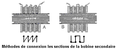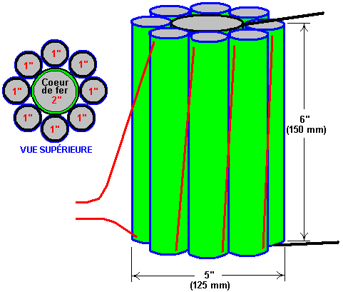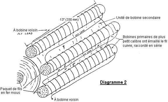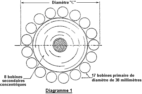 ![]() L'intervalle ‘G' réduit l'inertie de couler des électrons aussi bien que fournir la pièce pour la poudre du fer huile - trempée entre qui sera emballée chaque sinueux. Peut-être 1 mm à 1.5 les mm seraient un intervalle suffisant entre tours adjacents de l'enrouler. Cependant, ce serait recommandé de vernir la bobine qui enroule pour le sceller dans place sur la toile pour draps du fer avant d'emballer chaque bobine avec la poudre du fer. Cela fournit aussi la protection de l'insulative supplémentaire. Le but du spacers concentrique non - métallique dans la bobine secondaire sert deux buts: a. Minimiser les effets de l'annulation. b. Produire un Orgone accumulateur effet. La matière utilisée pourrait être des PVC résistants qui tubent avec quart pouce murs épais ou quart pouce toile pour draps épaisse, peut-être la chaleur a traité, a enveloppé autour des bobines. Vous pouvez être chanceux pour une ou deux des bagues concentriques exigée, et a un morceau de PVC qui tube lequel est juste le bon diamètre. Pour les restant diamètres vous pourriez réduire la circonférence d'un plus grand morceau de tuber, donc le convertir au diamètre désiré. Soyez sûr que le joint de la cible est parfait ou que tous intervalles dans le joignez est rempli dans d'une matière de remplissage plastique convenable. Quelque innovation et ingéniosité peuvent être exigées pour cette partie de la construction. La stratégie générale pour construire ceci multi a posé en couches la bobine secondaire est le construire en enroulant chaque bobine sur cylindres concentriques séparés qui consistent en la toile pour draps du fer or - plaquée enveloppé autour du spacer non - métallique. Le diamètre intérieur d'un cylindre sera le diamètre externe d'un autre. Ils en sont joints un à l'intérieur de l'autre alors ensemble. Les fils de la mouche sont utilisés pour interconnecter les fins de chaque bobine alors. Pour les expériences de l'initiale cela peut être fait dans plusieurs chemins par deux de qui sont recommandés M. Cater: