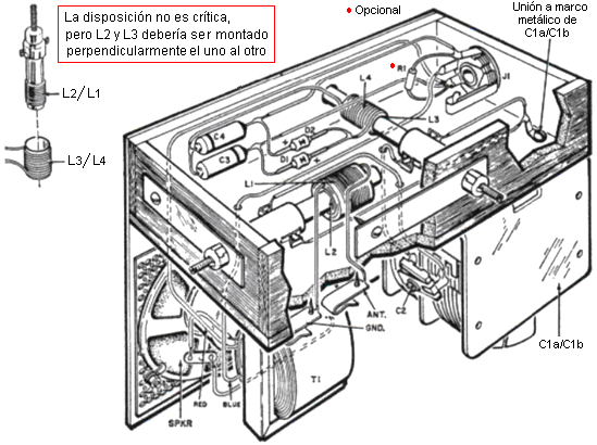 Él dice: Aquí está una pequeña radio de cristal con bastante poder de conducir a un 2.5" altavoz. La selectividad de esta pequeña unidad es mucho mejor que usted esperaría encontrar en un receptor de cristal y el volumen es igual a esto obtenido con juegos usando un transistor. Ninguna fuente de alimentación externa es requerida. La selectividad extraña de esta radio es debido a su recorrido doble-templado especial. Un par de diodos relacionados como un doblador de voltaje proporciona el poder suplementario de hacer funcionar al pequeño altavoz. Un enchufe de salida es proporcionado para audífonos o para unir el juego a un amplificador. Construcción: el modelo fue construido en 2.5” x 4.5" chasis de madera con 3.5" x 4.5” panel delantero metálico. Sin embargo, el tamaño no es materiales críticos, y otros puede ser substituido de ser deseado. Dos ferrita estándar loopsticks, L2 y L3, es usada. Ambos deben ser modificados por la adición de una segunda cuerda. L1 y L4, respectivamente. Cada una de las cuerdas añadidas consiste en 22 vueltas del No 24 la herida de alambre cubierta por algodón en un pequeño tubo de cartón como mostrado en el cuadro. (Realmente, cualquier tamaño de alambre del No 22 al No 28 con algodón o aislamiento de esmalte puede ser usado). El diámetro del tubo de cartón debería ser ligeramente más grande que L2 y L3 de modo que L1 y L4 resbalen sobre L2 y L3 fácilmente. La Resistencia R1 es usada sólo para alimentar el juego en un amplificador; debería ser omitido tanto para operación de altavoz como para auricular. El condensador de contemporizador C2 debería ser soldado a través de los terminales de estator de C1a/C1b condensador variable de dos cuadrillas como mostrado. El altavoz y el transformador de salida pueden ser montados donde es conveniente. Si un chasis metálico es usado, luego estar seguro para aislar los enchufes de unión aéreos y de la tierra del chasis. Cuando todas las partes han sido montadas en el chasis, póngalos instalación eléctrica juntos después de diagramas esquemáticos e ilustrados. Esté seguro que los diodos D1 y D2 y condensadores C3 y C4 están relacionados correctamente, prestando la atención a su polaridad. Mientras este es interesante, lo que parece ser un factor clave está contenido en los dibujos, donde él declara que la única cosa importante consiste en que es esencial para los dos juegos de bobinas para ser montados perpendicular el uno al otro: ![]() ![]() Alineación y Operación. Para alinear al receptor, únalo a una antena y tierra. La longitud óptima de la antena varía con la posición, pero 50 pies serán por lo general convenientes en áreas que reciben varias estaciones de la difusión. Después, tape un auricular de impedancia alta en el enchufe J1. Sintonice una estación cerca del final de frecuencia alto de la cinta de emisión – dicen, 1500 kilohercios – y ajustan los condensadores de contemporizador en C1a/C1b condensador variable para conseguir la señal más fuerte. El condensador de contemporizador C2 debería ser ajustado entonces para la mejor selectividad y volumen sobre la cinta de emisión entera. Finalmente, los Bobinas L1 y L4 pueden ser movidos a sus posiciones óptimas deslizándolos de acá para allá sobre bobinas L2 y L3. Si una estación cercana interfiere con la recepción de una estación más débil, melodía la babosa de L2 para conseguir la interferencia mínima. Para la operación de altavoz, simplemente desenchufe el auricular. Las estaciones locales fuertes deberían ser recibidas en el volumen justo. Como esto Funciona: El receptor emplea un recorrido doble-templado que alimenta un doblador/detector de voltaje de diodo de cristal que conduce un pequeño altavoz. Las señales de radiofrecuencia recogidas por el sistema de antena son inducidas en el bobina L2 del bobina L1. La señal deseada es seleccionada por el recorrido templado C1a/L2 y conectada por C2 condensador a un segundo recorrido templado C1b/L3, que mejora la selectividad estrechando la radiofrecuencia bandpass. La señal dos veces templada es inducida entonces en el bobina L4 del bobina L3. La mitad positiva de la señal de radiofrecuencia que aparece a través de L4, pasa el 1N34A germanium diodo D2 para cobrar C4 condensador. La mitad negativa de la señal pasa por el diodo D1 para cobrar C3 condensador. La polaridad de los gastos en C3 y C4 es tal que el voltaje eficaz es doblado. Este voltaje parece a través de la primaria del transformador de salida T1 que convierte la señal de impedancia alta a una salida de impedancia baja satisfecha al altavoz. Mientras este parece a un diseño muy bueno para un juego de cristal, el hecho que lo insisten que los pares de bobina deben ser montados perpendicularmente el uno al otro levanta una paralela interesante con el susodicho trabajo de Vladimir Utkin donde él declara que si el campo de excitación de alta frecuencia es perpendicularmente al bobina de salida, entonces habrá una afluencia de energía libre en el recorrido del ambiente local. Quizás este diseño de juego de cristal gana el poder suplementario de conducir esto es el altavoz de una afluencia de la energía ambiental. El "FLEET" Toroid de Lawrence Tseung. "Para siempre Llevar-fuera el Transformador de Energía Existente") el dispositivo es un generador eléctrico mismo-impulsado que no tiene ninguna parte mudanza y qué puede construirse barato. Se ha desarrollado por un Hong Kong basó equipo de las personas: Mr Lawrence Tseung, Dr. Raymond Ting, Srta. Para siempre Yuen, Mr Molinero Tong y Mr Chung Yi Ching. Es el resultado de algunos años de pensamiento, investigación y comprobación y ha alcanzado una fase avanzada de probar ahora y demostración y está casi listo para la producción comercial. Mt Tseung ha aplicado su "Llevar-fuera" la teoría a la categoría de circuitos de bajo-poder conocido como el "el Julio Ladrón" los circuitos. Estos circuitos originaro