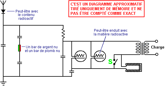 Par exemple, nous regarderons les renseignements de Hermann Plauston et il a considéré tout système aérien de son lequel n'a pas produit plus qu'un pouvoir en excès de 100 kilowatts, comme un “petit” système. Thomas Henry Moray a démontré son système aux audiences à maintes reprises, en tirant dans les niveaux du pouvoir de jusqu'à 50 kilowatts. Ces niveaux du pouvoir ne sont pas produits par les signaux de la station de radio. Le Système de Nikola Tesla. Nikola Tesla a produit un appareil aérien qui est valeur mentionner. Il a été fait breveter mai 21er 1901 comme un “Appareil pour l'Utilisation d'Énergie Radiante”, Brevet Américain nombre 685,957. ![]() L'appareil paraît simple mais états Tesla que le condensateur a besoin d'être “de capacité électrostatique considérable” et il recommande d'utiliser le meilleur mica de la qualité pour le construire comme décrit dans son 1897 brevet No. 577,671. Le circuit tire le pouvoir par une plaque du métal étanche, brillante. L'isolement pourrait être aérosol sur le plastique. Le plus grand la plaque, le plus grand le pick-up d'énergie. Le plus haut la plaque est élevée, le plus grand le pick-up. ![]() Ce système des pioches de Tesla en haut jour d'énergie et nuit. Le condensateur est chargé au-dessus et un changement vibrant à maintes reprises décharges le condensateur dans le pas en bas transformateur. Le transformateur baisse le voltage et augmentations le courant disponible et la production est utilisée pour propulser la charge électrique alors. Il paraît vraisemblable que cet appareil opère d'électricité statique qui quelques gens croient est une manifestation du zéro point champ d'énergie à l'origine. Le matériel de Tesla peut opérer bien quand a nourri par une machine Wimshurst à moteur au lieu d'une grande plaque aérienne. Les détails de matériel Wimshurst maison - construit sont disponible dans le livre ‘' Foudroyant Fait à la maison par R.A. Ford, ISBN 0-07-021528-6. Cependant, il devrait être compris que Tesla a décrit deux formes différentes de pick-up d'énergie. La première est électricité statique, reprise d'interaction très légère de la plaque du pick-up avec le zéro point champ d'énergie qui coule à travers lui, et l'autre pick-up de l'existence d'événements de l'énergie radiants dynamiques, typiquement de coups de l'éclair. À un coup d'oeil informel, la personne moyenne ne considérerait pas éclair comme être une source viable d'énergie, mais ce n'est pas le cas comme là est approximativement deux cents coups foudroyants par seconde - principalement dans les tropiques - et ce qui n'est pas compris généralement est qu'ils sont les événements d'énergie radiants et leurs effets sont sentis comme transmissions à travers le zéro point champ d'énergie à l'instant partout sur terre est instantané à toute distance. Clarifier la situation un peu plus, sont deux ici des brevets de Tesla, un sur pick-up du champ statique que les remarques Tesla paraissent être illimité dans le voltage, et un brevet sur pick-up d'énergie dynamique. C'est une copie légèrement ré - rédigée de ce brevet, comme quelques mots ont changé leur signification depuis que ce brevet a été publié. Si vous souhaitez voir l'original, alors http://www.freepatentsonline.com vous permettra de télécharger une copie sans toute charge. Faites breveter les USA 685,957 1901 de 5e novembres Inventeur: Nikola Tesla APPAREIL POUR L'UTILISATION D'ÉNERGIE RADIANTE À tout qu'il peut intéresser Soyez il su que je, Nikola Tesla, un citoyen de l'Unit des États, en résidant à la ville de Manhattan, dans la ville, comté et État de New York, ont inventé des certaines nouvelles et utiles améliorations dans Appareil pour l'Utilisation d'Énergie Radiante de que le suivre est une spécification, l'existence de la référence avait aux dessins accompagner et former une partie du même. C'est bien connu que certaines radiations - tel que ceux de lumière de violette extrême, cathodique, rayons du Röntgen, ou le même - possédez la propriété de charger et décharger des conducteurs d'électricité, l'existence de la décharge particulièrement notable quand le conducteur sur que les rayons s'heurtent est électrifié négativement. Ces radiations sont considérées pour être vibrations de l'éther d'extrêmement petites longueurs de la vague généralement, et dans explication des phénomènes notée, il a été supposé par quelques autorités qu'ils ionisent, ou rend conduite, l'atmosphère à travers qu'ils sont propagés. Cependant, mes propres expériences et observations me mènent aux conclusions plus dans accord jusqu'ici avec la théorie avancée par moi que sources de tel jet de l'énergie radiant fermé avec grande vélocité, particules tout petit de matière qui est électrifiée fortement, et par conséquent capable de chargement un conducteur électrique, ou, même si pas donc, peut décharger un conducteur électrifié de toute façon, non plus par physiquement transport fermé sa charge ou autrement. Ma présente candidature est basée sur une découverte que j'ai fait que quand rayons ou radiations du genre précité sont autorisées à tomber sur un conduite corps étanche a connecté à un des terminaux d'un condensateur, pendant que l'autre terminal du condensateur est fait recevoir ou emporter électricité loin, un courants courants dans le condensateur si long comme le corps étanche est exposé aux rayons, et sous les conditions spécifiées dessous, une accumulation indéfinie d'énergie électrique dans le condensateur a lieu. Après un intervalle du temps convenable pendant qui aux rayons sont permis d'agir, cette énergie peut se manifester dans une décharge puissante que peut être utilisée pour l'opération ou contrôle de mécanique ou appareils électriques ou peut être rendue utile dans beaucoup d'autres chemins. Dans appliquer ma déc