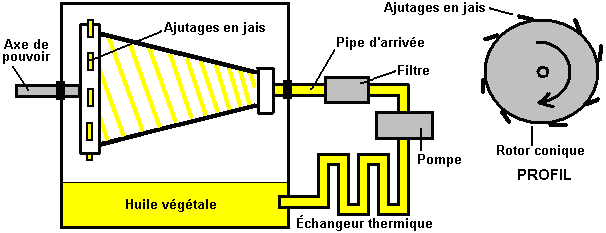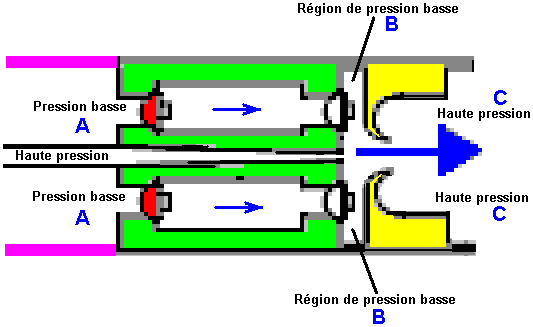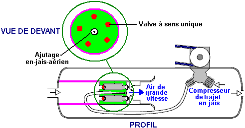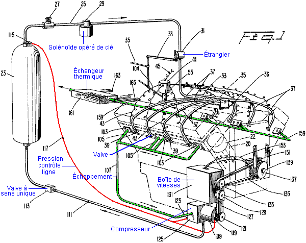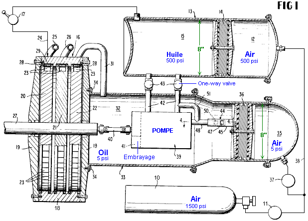Vérifions ceci dehors en jetant un coup d'oeil sur quelques-uns des moteurs qui utilisent ceux-ci principe pour fournir le combustible moins d'opération, commencer avec le dessin de Bob Neal. Le brevet plein pour le dessin de Bob est inclus dans l'Appendice. Le dessin de Bob Neal est un moteur fluide - opéré combiné et compresseur où l'opération du moteur garde le ré - fournissant le réservoir de l'air comprimé: ![]() C'est une vue de la perspective du moteur et ce: ![]() est une vue de l'échantillon transversale verticale à travers la partie du compresseur du moteur. Dans son brevet, Bob a évité toute mention directe du fait que son dessin du moteur est alimentez moins. Cette sorte de déclaration n'est pas populaire avec les Examinateurs Brevetés égalise si c'est parfaitement vrai. Scott Robertson. Le système de Bob Neal pourrait faire avec quelque explication supplémentaire, si ici est une idée de Scott Robertson dont le site web est http://www.aircaraccess.com/index.htm, pour un système du compresseur actif possible qui utilise un feuille ventilateur,: ![]() Pendant que cela regarde compliqué plutôt, dans réalité ce n'est pas vraiment. Amenons les sections différentes dans ordre: ![]() En premier, vous avez un moteur de l'air ordinaire, fourni avec l'air comprimé d'un réservoir de la pression. Ce moteur épuise son (froid, allongé) air à l'atmosphère. Le moteur propulse deux compresseurs qui entre eux gardent le réservoir plein d'air comprimé. ![]() Le premier compresseur est un ‘simple feuillette le ventilateur ' écrivent à la machine qui produit un grand volume d'air de basse pression. Est-ce que la grande question est “comment est-ce que vous vous mettez ce grand volume d'air de basse pression dans un réservoir qui a de l'air comprimé stressant à l'intérieur de lui?”. Bien ce apparemment la tâche impossible est exécutée par le deuxième compresseur aidé par une ruse, dessin extrême simple,: ![]() Ici, l'air de basse pression est nourri dans la région de basse pression marquée dans rose. Le séparer de la région stressante est un bouchon du métal marqué dans vert. Mettez dans ce bouchon est une bague de cinq valves de l'air à sens unique marquée dans rouge. Ces valves à sens unique ont laissé l'air de basse pression dans la région stressante à cause d'un jet ultra-rapide d'air produit par le ‘jet promenade compresseur '. À première vue, cela paraît impossible, mais c'est réellement seulement une candidature d'une technique De l'ingénieur standarde. Le jet de l'air ultra-rapide est dirigé à travers une lance spécialement façonnée, en créant une zone de basse pression locale autour du jet: ![]() L'air de basse pression à point “A” courants à travers la bague de cinq valves à sens unique dans la basse région de la pression disque - façonnée “B” et est fait sauter dans la région stressante “C” par le jet de l'air puissant qui déchire à travers la bague beignet - façonnée marqué dans jaune. Les causes du jet de l'air ultra-rapides la basse bague de la pression “B” par son mouvement rapide qui crée un tourbillon dû à la forme et placer de la bague beignet - façonnée a marqué dans jaune. Cet arrangement intelligent permet à grands volumes d'air de basse pression d'être tiré dans un réservoir qui contient de l'air stressant. Vous noterez aussi que le deux étape compresseur qui produit ce jet ultra-rapide d'air, a sa région du fonctionnement à l'intérieur du réservoir réellement. Cela veut dire que la chaleur de compression est utilisée chauffer l'air à l'intérieur du réservoir et élever sa pression, en rehaussant l'opération plus loin. Il devrait être porté dans esprit qui la nouvelle entrée de l'air le système a été chauffé par le soleil et été contenu l'énergie qui propulse le système. Le Moteur de Leroy Rogers. Le moteur Rogers montré qu'ici ne fait pas de demandes à opération spectaculaire, mais malgré cela, Leroy a admis dans une entrevue que ce moteur a une plus grande production en effet que l'entrée appliquée, pourvu que le moteur ne soit pas laissé juste tic-tac partout. Ce moteur est comme le brevet 3,744,252 Américain “Système du Pouvoir du Motif Fermé Utilising Compressed Fluides” par Eber Van Valkinburg montré dessous. Cependant, les Rogers font breveter montré ici a l'avantage distinct qu'il utilise des moteurs disponibles en magasin et aisément matériel disponible et il n'y a rien vraiment exotique ou difficile au sujet du moteur Rogers qui une personne ne pourrait pas obtenir d'un fournisseur de la valve ou obtenir qu'une compagnie de l'invention du métal construise. Cependant, pendant que Leroy a affirmé que son dessin était autonome quand aller plus de 30 milles par heure, un trait du dessin clé est sa très haute unité du compresseur de la performance qu'il a omis des détails brevetés et lequel il est peu disposé à divulguer. Les présents moteurs du véhicule du jour sont sous s'est embrayé et court à assez bas accélère. Ces mêmes moteurs opèrent beaucoup à plus haut plus efficacement accélère, si l'engrenage différent est donné à eux. Avec le moteur Rogers, l'air contenu dans le réservoir stressant est suffisant pour conduire les pistons et en bas. L'air peut être pompé arrière dans le réservoir stressant par un compresseur qui a un beaucoup plus haut engrenage et beaucoup de capacité inférieure par coup du piston. L'air allongé qui sort du moteur est à beaucoup de température inférieure que l'air environnant et s'il avait capturé dans un réservoir plus jaune clair et usagé comme l'entrée du compresseur, recharger le réservoir de l'air alors est plus effectif, à condition que le réservoir absorbe la chaleur de l'environnement environnant, en l'élevant est température à l'intérieur du réservoir et donner une augmentation supplémentaire à la pression du réservoir ainsi, sur e