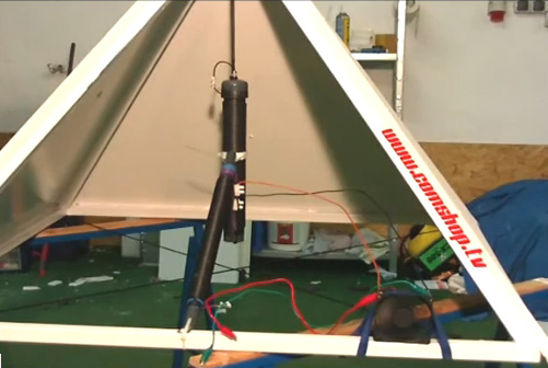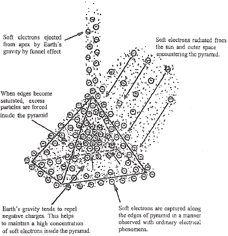I will not attempt to show the construction details described in those videos as the information is very extensive, but a few comments may be appropriate here. Thomas refers to a ‘wheel’ but unless I am mistaken, he means a solid plastic rod of circular cross-section. The coil wire which he uses is 1.5 mm diameter copper wire with plastic insulation. With an inner coil of 104 turns, that can produce 1.5 amps at 14 volts, which is 21 watts, and with no input power being provided by the user, that is a COP of infinity. However, if I understand what he is saying, he positions his pyramids North-South (unlike the design above) and more importantly, at a particularly good point on what he calls a ‘water-line’ which I take to be a ley line located by a dowser. That may be due to the fact that he lives in a village in Austria which is a long way from the Equator, which, according to Joseph Cater’s analysis of pyramids, reduces their effectiveness. In this new design, Thomas uses 20 watts of power from a Citizen’s Band radio transmitter, boosted by an amplifier, and applied to his detector tube while he fills it very slowly with fine-grain, high-quality quartz sand. This signal orientates most of the quarts grains and probably replicates most of Thomas Henry Moray’s detector which allowed such high power extraction from a simple aerial. In this design of Thomas’ no earth wire is needed for operation. An earth wire is provided, but this is for the protection of the user and is not part of the energy gathering system. Thomas agrees with Joseph Cater, that the energy being tapped flows out of the top of the pyramid. The videos are located here: Part 1 Part 2 Part 3 Part 4 Part 5 Part 6 Part 7 Part 8 Part 9 Part 10 Part 11 Part 12 Part 13 ![]() Thomas’ website which is in German is www.comshop.tv/ Thomas picks a fairly small size of pyramid for his demonstration tutorial. It is made using eight pieces of steel channel, each piece being exactly one meter long. He welds these together but remarks that bolting them together is perfectly all right provided that each piece makes good electrical contact with the pieces which it touches as the whole frame acts as a single component in his design. Thomas also talks about ‘welding’ the inner copper pipe to one end cap, but what he means is ‘soldering’ the joint as he spreads resin on the join, heats it with a gas torch and then runs plumber’s solder around the join. Thomas’ video series was removed from the web but has been replaced here: Video tutorial: part 1 Video tutorial: part 2 Video tutorial: part 3 Video tutorial: part 4 Video tutorial: part 5 Video tutorial: part 6 Video tutorial: part 7 Video tutorial: part 8 Video tutorial: part 9 Video tutorial: part 10 Video tutorial: part 11 Video tutorial: part 12 Video tutorial: part 13 Confirmation of the dehydrating effect of a pyramid was provided by the Frenchman Antoine Bovis who went on holiday to Egypt in the 1930s and visited the Great Pyramid which was constructed exactly in the North - South direction (almost certainly not by accident) and built to an accuracy of 0.01% or better. He discovered that a number of small animals had wandered into the pyramid, got lost and starved to death. The really interesting point was that all of these animals had been mummified through dehydration and none of the bodies had rotted away. When he returned home, he built a model pyramid with base edges three feet long. He found that his pyramid duplicated the dehydration effect. He, and others who followed him, investigated the effect of pyramids. They found: 1. The best shape is that which matches the dimensions of the Great Pyramid, whose faces slope at an angle of 51 degrees, 51 minutes and 10 seconds. Pyramids with other slopes will work, but not quite as well. If you would like to make one yourself and test the effects, then each of the four sides can be cut from stiff cardboard to these proportions: ![]() So if the base length is to be 20 units, then the height at the mid point of the base will be 16.17 units. If the base length is to be 25 units (mm, cm, inches, or whatever), then the height should be 20.21 units. If the base is to be 30 units, then the height should be 24.26 units. If the base is to be 35 units, then the height should be 28.3 units, and so on. Just cut out four of the triangles and tape the edges together. It would be a good idea to add a square base piece (or triangular gussets) to ensure that the base is exactly square and not skewed. Thomas Trawoeger states that the exact angle is not particularly important and his latest designs have angles of about sixty degrees. 2. There is no need for the pyramid faces to be solid, provided that there are four base sides and four sloping edges. Having solid sloping faces gives a slight improvement. If building a framework pyramid, then the dimensions for the four base pieces and the four sloping edges would be: Base: 20, length of the sloping edges: 19 Base: 25, length of the sloping edges: 23.76 Base: 30, length of the sloping edges: 28.52 Base: 35, length of the sloping edges: 33.27 and so on. 3. The best material from which to construct the pyramid is copper, but as it tends to be rather expensive, almost any other material can be used: plastic piping, timber laths, steel alloy pipes, wire, etc. Giving the pyramid a sheet-copper cap which runs down about 5% of the face length, giving a short solid face on the open framework also gives a slight improvement. Les Brown states that the best material is sheet iron plated with gold, though that sounds very expensive. So, what can a pyramid do? Well, nothing, actually, except for directing and possibly concentrating and focusing the Zero-Point Energy field. Perhaps the question should be ‘what effects are caused by using a pyramid?’. Well, as seen above, Flavio Thomas Trawoeger has managed to get a continuous electrical output via a pyramid for a period of at least thirty da