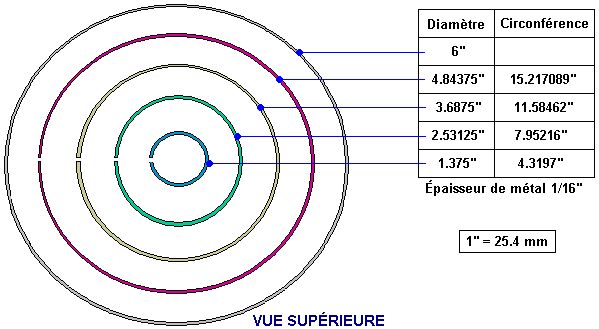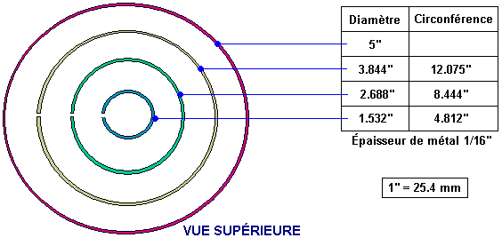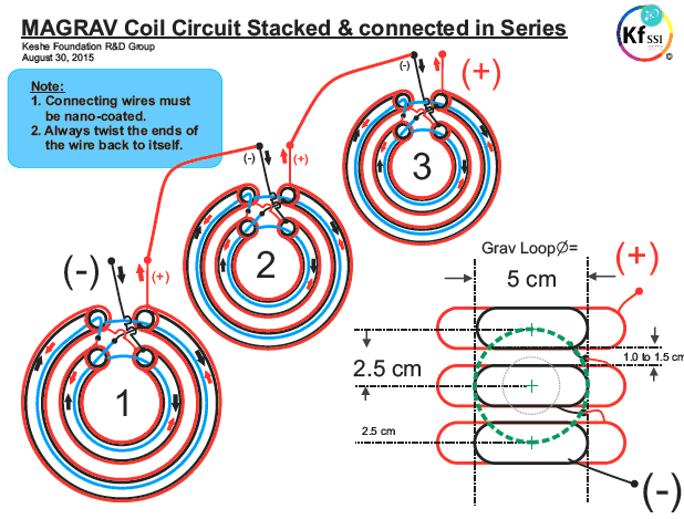Ou comme cela : ![]() Les photographies 1 et 2 spectacle deux différentes vues d'on construit. Les neuf rouleaux en spirale ont sept tours et la fin étroite est un tour plat. Le trou entre les spirales jaunes et bleues est tout à fait grand, en ayant l'air d'être juste sous la profondeur de deux tours des spirales. La base est la même forme et le verrou montant n'est pas peint, la couleur suggérant que cela pourrait être un verrou en laiton. La grandeur de l'anneau montant peut être estimée de l'homme à la photographie 2 et je le mettrais à 250 millimètres (10”) comme la Jetée était l'italien et donc a sans doute utilisé des unités métriques de mesure. Je doute que les dimensions soient critiques et les spirales ont l'air d'être environ 100 millimètres (4”) grand avec le plus large tour étant environ 45 millimètres (1.75”). On ne nous dit pas que le métal a été utilisé pour n'importe laquelle de la construction, mais comme les deuxièmes des artifices de Jetée à être décrits ici spécifient de l'aluminium, il ne peut pas être exclu ici, bien que le métal ressemble vraiment à l'acier peint. Tant on considère généralement que l'aluminium que le cuivre est non-magnétique parce qu'un aimant ne s'attache pas normalement à n'importe lequel de ces métaux. Mais, cela induit hautement en erreur comme tant avoir un effet important quand placé dans un champ magnétique, que l'écoulement d'énergie étant canalisé par cet artifice de Jetée est affecté par les champs magnétiques, donc l'utilisation d'aluminium sera probablement extrêmement significative. Pourtant, cela étant dit, nous n'avons aucune information directe sur ce qui est utilisé dans cet artifice “ERIM”. Vous remarquerez aux photographies 1 et 2, que le fait de traîner sur les bras des bars à travers le fait de monter circulaire est tout à fait court, en faisant leurs verrous être largement espacé, qu'à son tour, fait les spirales bleues et jaunes extérieures être largement séparées. Ceux-là traînent sont plus longs dans le fait de construire montré à la photographie 3, en rapprochant les verrous ensemble et en approchant les spirales bleues et jaunes ensemble. À la photographie 3 le long pour monter le verrou au fond de l'anneau a l'air d'être plus épais et il est peint bleu. Les spirales ont le plus petit tour plat à travers la longueur de la spirale. Prenez des photos de 4 spectacles qu'un tiers construit de l'artifice, avec un soutien encore plus épais un verrou a peint l'écartement bleu, plus large entre les spirales bleues et jaunes et cette fois, le plus petit tour de la spirale augmenté axialement et a classé à un point. Il semble que l'artifice est rassemblé et peint ensuite ensuite bien que les spirales puissent être trempées au préalable. Prenez des photos de 4 spectacles comment les spirales sont protégées sous la tête d'un verrou qui est vissé dans un trou enfilé dans la charpente circulaire. La photographie 3 semble suggérer que l'exactitude de construction n'est pas critique avec les spirales de côté non mises en ligne correctement (à moins que les spirales plus basses ne doivent montrer légèrement vers l'intérieur qui semble improbable, d'autant plus que la spirale supérieure de photographie 3 n'est pas vraiment verticale et ne met pas en ligne avec les deux autres spirales jaunes. La photographie 4 semble suggérer que les spirales vertes peuvent être légèrement plus compactes que les autres bien qu'ils aient exactement le même nombre de tours. Chaque spirale est la blessure la même voie ainsi quand vu d'en haut, les spirales supérieures emménagent en sens inverse des aiguilles d'une montre la direction comme ils montent et les spirales plus basses emménagent dans le sens des aiguilles d'une montre la direction comme ils deviennent plus bas. Il pourrait être que le fait de colorer des composantes pourrait juste être pour se référer à eux, mais je ne pense pas que ce soit ainsi. Dans l'artifice suivant, la Jetée insiste sur les différentes couleurs et en estimant que de différentes couleurs rayonnent de différentes fréquences de lumière, il peut bien y avoir la signification dans les couleurs. Les jetées décrivent l'opération de cette manière : Les propriétés de l'artifice sont déterminées par c'est la forme. Les trois spirales jaunes montrant concentrent en haut l'Énergie Solaire pendant que les trois spirales bleues montrant en bas, concentrez l'énergie bio de Terre qui est la réflexion négative de la Terre de l'Énergie Solaire. Quand ces deux se rencontrent, ils produisent un signe sur les spirales vertes a appelé le Rythme Magnétique de Terre de soleil (qui est le rythme de tout qui existe sur la Terre - tant animé qu'inanimé). Ce signe améliore ce rythme fondamental essentiel pour tout dans il fait marcher le rayon, en normalisant et en équilibrant des cellules et en nettoyant l'énergie d'une pièce. Idéalement, l'artifice devrait être placé dans la chambre à coucher pour qu'il puisse agir pendant la nuit, mais cela peut aussi être efficace presque n'importe où. Il devrait être placé environ 10-20 centimètres de distance des murs. Au départ, pour accélérer le processus de mise en équilibre cellulaire, vous pouvez placer vos mains environ 10-15 centimètres de chaque côté de l'artifice, avec vos paumes tournées vers les spirales vertes et au même niveau comme ils sont. Le temps exigé dépendra de la sensibilité individuelle Si vous avez le chauffage central chaud d'eau, vous pouvez placer l'artifice environ 10 centimètres de la chaudière avec les spirales vertes parallèles à cela; l'eau circulante portera des informations partout dans le système et nettoiera des pièces au cours de quelques jours. Pour stimuler de l'eau et le rendre à c'est l'état original, naturel, l'endroit une bouteille d'eau à chaque côté de l'artifice, environ 10-15 centimètres des s