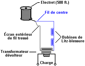 ![]() Co-axial Cable Electrets. Il y a un appareil qui n'est pas su largement. Il est appelé un " electret " et je dois confesser que ma connaissance d'eux est presque zéro. Essentiellement, un electret est un appareil passif qui verse dehors énergie électrique. Je ne sais pas où cette énergie électrique vient de. L'encyclopédie Wikipedia en a quelques-uns renseignements très techniques en le remarquant soumis cette " ionisation " de tunnel est un processus dans que les électrons dans un atome peuvent traverser la capacité de l'atome (voltage) barrière et s'échappe de l'atome. Dans un champ électrique intense, la barrière potentielle d'un atome est déformée radicalement et donc la longueur de la barrière à travers que les électrons ont à laissez-passer, les baisses et électrons peuvent s'échapper tout à fait facilement. Les atomes parlés d'ici, peut être ceci d'un diélectrique lequel pourrait former un electret. Une méthode qui a été utilisée dans le passé pour faire un electret, a été changer la structure de certains types de cire. Une méthode plus commode est utiliser une bobine de câble co - axial standard qui est la sorte de câble connectait l'aerials de la télévision aux receveurs de la télévision: ![]() Un electret de ce type peut produire 10,000 volts à 10 milliamps. Le courant courant de 10 milliamps semble insignifiant et d'aucune conséquence, mais ce n'est pas le cas comme le pouvoir de 10 milliamps à 10,000 volts réellement est 100 watts, ainsi imaginez une ampoule de 100 watts allumée brillamment et n'avoir pas besoin toute entrée du pouvoir à tout pour le faire brille. C'est réellement, tout à fait impressionnant. S'IL VOUS PLAÎT NOTEZ QUE 10,000 VOLTS VOUS TUERONT ET ENQUÊTER SUR UN APPAREIL DE CE TYPE N'EST PAS POUR GENS QUI NE SONT PAS DÉJÀ FAMILIER AVEC TRAVAILLER AVEC LES TRÈS HAUTS VOLTAGES SANS RISQUE. LES DIMENSIONS DOIVENT ÊTRE FAITES AVEC MATÉRIEL DE HAUT VOLTAGE SEULEMENT. LAISSEZ-MOI ACCENTUER ENCORE QUE JE NE VOUS ENCOURAGE PAS À FAIRE OU EXPÉRIMENTER AVEC TOUTE FORME DE HAUT APPAREIL DU VOLTAGE ET QUE CES RENSEIGNEMENTS SONT POUR VOTRE INTÉRÊT SEULEMENT. L'arrangement avec une bobine seule de câble est: ![]() Malheureusement, vie qui est ce que c'est, il a été trouvé que quand vous essayez mesurer au pas cette production du voltage jusqu'à un niveau plus commode, il y a responsable pour être des pertes qui peuvent baisser le pouvoir de la production à seulement 50 watts. Cela sonne décevoir jusqu'à ce que vous l'ayez mis en perspective. C'est un appareil qui a la même production comme un panneau solaire de 50 watts dans lumière du soleil pleine, est monté à l'angle optimum et a placé près l'équateur, mais une installation de maison d'un tel panneau donne la production inférieure loin, particulièrement donc quand votre maison est loin de l'équateur. Mais, note que l'electret coûte moins loin, produits alimentaires qui production pleine à toute latitude et le soir, pendant que le panneau solaire est restreint par plafond de nuages, distancez de l'équateur, besoins un système de l'installation cher, idéalement devrait tourner pour traquer la place du soleil, et seulement travaux quand il y a un haut niveau léger. Donc, les cinquante watts des electret de pouvoir continu ne sont pas une chose insignifiante quand vous le comparez aux autres options disponible. Ces electrets peuvent être empilés dans parallèle et une production dans les kilowatts la gamme est possible. Laissez-moi mettre en relief que je n'ai pas personnellement cependant a fait ou usagé un electret du câble co - axial, et donc les renseignements ici viennent d'un experimenter qui a fait ceci. Aussi, pendant que les renseignements ici sont projetés d'aider quelqu'un qui souhaite expérimenter le long de ces lignes, le fait que c'est ici ne doit pas être interprété comme mon vous encourager à essayer de faire ou utiliser un electret de ce ou tout autre type personnellement. Si vous choisissez de faire que, alors vous faites à votre propre risque si tout à fait et personne autre que vous n'es responsable si toute mésaventure devrait se produire. La procédure suivante a été utilisée pour convertir une bobine pleine de 1/4 ", type RG6/U 75 ohms, 18-AWG câble co - axial dans un electret: