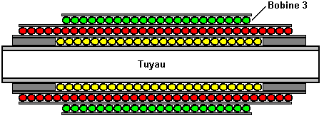Il aide pour penser à eau qui charge comme un 2 processus du pas. Le premier pas est un pas du nettoyage qui enlève une variété d'impudicités de l'eau simplement, et ce pas est exécuté dans la cellule de la plaque plate le mieux. Le deuxième pas est le chargement de l'eau réel, et cela exige un Joe Cell réel. Quand l'eau qui a été nettoyée dans la cellule de la plaque plate est introduite dans le JC et le courant est appliqué en premier, l'eau paraît progresser à travers toutes les trois étapes dans une matière de minutes tout à fait rapidement. Par la fin de la première charge de 5 minutes à 1 ampère la cellule aurait dû progresser à une étape 3 agréable. L'eau a besoin d'être souvent filtré. Les serviettes du magasin bleues sont recommandées, et un SS standard installe la passoire de la cuisine du type les tient gentiment. Comme une règle de pouce, j'aime filtrer après approximativement 15 minutes de charger le temps. Quelques impudicités dans l'eau ne sont pas visibles, donc ne compte pas sur apparence visuelle seul déterminer quand c'est temps pour filtrer. La provision du pouvoir - il y a beaucoup de documentation que cela parle au sujet de charger de l'eau avec 12 volts là-bas. Oubliez tout qui! Il y a très peu de places dans le monde où l'eau est ce conducteur. Il amènera 100-200 VDC dans la plupart des cas pour obtenir que 1 ampère de courant coule à travers une cellule. Ce qui paraît travailler fin est un variac et un redresseur du pont de la vague plein. Dans un pincement seulement un FWBR à travers les 110 VAC loge le courant peut être utilisé, mais ce n'est pas réglable. Dans mon coup monté j'ai ajouté un 1 ohm résistance de 10 watts après le FWBR et un 100uF condensateur pour fournir quelque filtrage de l'ondulation. La résistance est une façon de commode qui dirige le courant courant en regardant le voltage laissée tomber à travers lui. Utilisez la prudence extrême comme ceux-ci est le voltage dangereux nivelle pour jouer avec. L'Acier sans tache Passivation - Si le s/s n'est pas passivated (a traité pour réduire la réactivité chimique de sa surface) les cellules seront un désordre constant avec beaucoup d'écume brune. Le meilleur meathod découvert si loin est utiliser Behr “Rust - Remover et Béton Gravent”, disponible de Dépôt de Maison pour approximativement $12.00 par gallon. Utilisez-le force pleine. La cellule peut être remplie de lui ou submergé dans lui et est parti pendant des heures. Il n'attaque pas le spacers du nylon. Juste est sûr de rincer après avoir trempé entièrement comme c'est grand mouillant agent et est dur d'être complètement rinsé. Avances en 2011. Dans un effort de développer un artifice d'imiter la fonction d'une cellule de Joe sans c'est des éditions de stabilité inhérentes, Dave Lowrance a trouvé l'idée d'un ensemble de 3 bobines de champ de torsion de concentriquement-blessure. Dans la première mise à l'essai il est devenu évident qu'un champ est produit, comme démontré par leur effet sur deux moteurs d'essai, même sans pouvoir étant appliqué aux bobines. C'est le très premier stade de l'enquête donc ce design initial est libéré avec l'espoir que d'autres envelopperont et évalueront des bobines semblables et signaleront leurs résultats aux groupes appropriés, pour que nous puissions apprendre plus d'eux par le fait de faire des expériences davantage sur une variété de différents moteurs. L'ensemble initial des bobines était la blessure sur 7/8” (22 mm) la tuyauterie d'acier inoxydable de diamètre qui est arrivée à être sous la main. L'utilisation d'acier inoxydable n'est pas significative et deux réplications réussies ont utilisé le demi-pouce (12 mm) pipe de plastique de POLYCHLORURE DE VINYLE, comme l'utilisation d'une matière non-ferreuse est l'exigence principale. Le diamètre fil a un effet et pendant que 20 calibre (0.812 mm diamètre) le fil couleur cuivre émaillé a été utilisé pour les rouleaux montrés ici, la blessure de bobines avec 12 calibre (2.05 mm diamètre) fil de cuivre travail beaucoup mieux et on le croit maintenant que le poids de cuivre dans la sinuosité est important. Pour la première couche, une longueur de 311 centimètres est utilisée et la blessure sur celui-là dans dans le sens des aiguilles d'une montre la direction. Les fins du fil sont protégées avec la bande, en quittant trois ou quatre centimètres de fil exposé à chaque fin du bobines, pour les buts de connexion. C'est la première blessure de couche et protégé : ![]() Le fil pour la deuxième couche est coupé à une longueur de 396 centimètres. Cette deuxième couche de bobine sera plus longue que la première couche, donc avant le fait de l'envelopper, il est nécessaire d'accumuler la région aux deux fins de la première couche avec le ruban isolant adhésif : ![]() C'est pour que la deuxième couche de fil ait le même diamètre le long c'est la longueur entière. C'est sans doute une bonne idée de complètement couvrir la première couche de fil avec l'isolation de la bande pour garantir la bonne isolation électrique. ![]() La deuxième couche de fil est aussi la blessure dans dans le sens des aiguilles d'une montre la direction : ![]() Le fil pour la troisième couche est coupé à une longueur de 313 centimètres. Puisqu'il couvrira moins de longueur le long de celui-là, il n'y a aucun besoin d'accumuler les fins des plus premières couches. Ainsi couvrez simplement la deuxième sinuosité avec la bande et ensuite le vent sur la troisième couche, mais cette fois, la bobine est la blessure dans en sens inverse des aiguilles d'une montre la direction et ensuite la bobine entier est couvert dans la bande pour le protéger. ![]() Pour s'assurer que les deuxièmes et troisièmes couches sont centrées sur la couche précédente, c'est une bonne idée de trouver le centre du fil et commencer à serpenter à partir du milieu vers l
