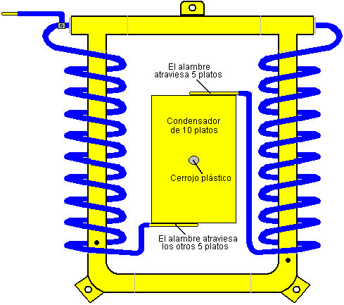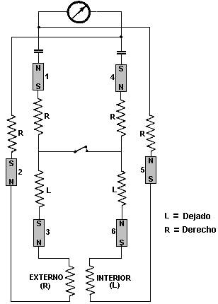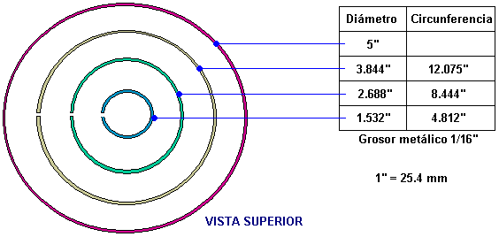 O como este: ![]() Fotografías 1 y 2 espectáculo dos vistas diferentes de uno construye. Los nueve rollos espirales tienen siete vueltas y el final estrecho es una vuelta llana. El hueco entre las espirales amarillas y azules es completamente grande, pareciendo estar sólo bajo la profundidad de dos vueltas de las espirales. La base es la misma forma y el cerrojo que monta no es pintado, el color que sugiere que esto pudiera ser un cerrojo de cobre. El tamaño del anillo que monta puede ser estimado del hombre en la fotografía 2 y yo lo pondría en 250 mm (10”) cuando el Embarcadero era el italiano y entonces probablemente usó unidades métricas de la medida. Dudo que las dimensiones sean críticas y las espirales parecen ser aproximadamente 100 mm (4”) alto con la vuelta más amplia que es aproximadamente 45 mm (1.75”). No nos dicen que metal fue usado para cualquiera de la construcción, pero cuando los segundos de los dispositivos del Embarcadero para ser descritos aquí especifican el aluminio, no puede ser gobernado aquí fuera, aunque el metal parezca realmente al acero pintado. Tanto se piensa generalmente que aluminio como cobre es no magnético porque un imán no se ata normalmente a cualquiera de aquellos metales. Pero, este engaña muy como tanto tener un efecto principal cuando colocado en un campo magnético, como el flujo de energía canalizado por este dispositivo del Embarcadero es afectado por campos magnéticos, entonces el uso de aluminio probablemente será muy significativo. Sin embargo, esto dicho, no tenemos ninguna información directa en lo que es usado en este dispositivo “ERIM”. Usted notará en fotografías 1 y 2, que arrastrar a las armas de las barras a través del montaje circular es completamente corto, haciendo sus cerrojos ser extensamente espaciado, que por su parte, hace que las espirales azules y amarillas externas sean extensamente separadas. Aquellos arrastran son más largos en construir mostrado en la fotografía 3, acercando los cerrojos juntos y trayendo a las espirales azules y amarillas más cerca juntos. En la fotografía 3 el largo para montar cerrojo en el fondo del anillo parece ser más grueso y es pintado azul. Las espirales tienen la vuelta más pequeña llana a través de la longitud de la espiral. Fotografíe 4 espectáculos que un tercero construye del dispositivo, con un cerrojo de apoyo aún más grueso pintó el espaciado azul, más amplio entre las espirales azules y amarillas y esta vez, la vuelta más pequeña de la espiral levantada axialmente y archivó a un punto. Parece que el dispositivo es reunido y luego pintado después aunque las espirales puedan ser bañadas de antemano. Fotografíe 4 espectáculos como las espirales son aseguradas bajo la cabeza de un cerrojo que es atornillado en un agujero enhebrado en el marco circular. La fotografía 3 parece sugerir que la exactitud constructiva no sea crítica con las espirales de lado no alineadas correctamente (a menos que se suponga que las espirales inferiores señalan ligeramente hacia adentro que parece improbable, sobre todo ya que la espiral superior de la fotografía 3 no es realmente vertical y no se alinea con las otras dos espirales amarillas. La fotografía 4 parece sugerir que las espirales verdes puedan ser ligeramente más compactas que los demás aunque ellos tengan exactamente el mismo número de vueltas. Cada espiral es la herida el mismo camino tan cuando visto desde encima, el movimiento de espirales superior en un en contrario dirección como ellos se elevan y el movimiento de espirales inferior en un dextrórsum dirección cuando ellos se hacen inferiores. Podría ser que el colorante de los componentes podría ser sólo para referirse a ellos, pero no pienso que este es así. En el dispositivo siguiente, el Embarcadero acentúa los colores diferentes y considerando que los colores diferentes irradian frecuencias diferentes de la luz, puede haber bien significado en los colores. Los embarcaderos describen la operación de esta manera: Las propiedades del dispositivo son determinadas por esto es la forma. Las tres espirales amarillas que señalan hacia arriba concentran la Energía Solar mientras las tres espirales azules que señalan hacia abajo, concentre la energía bio de la Tierra que es la reflexión negativa de la Tierra de la Energía Solar. Cuando estos dos se encuentran, ellos producen una onda en las espirales verdes llamó el Ritmo Magnético de la Tierra de sol (que es el ritmo de todo que existe en la Tierra - tanto animado como inanimado). Esta onda realza aquel ritmo básico esencial para todo dentro de esto hace funcionar el radio, normalizándose y equilibrando células y limpiando la energía de un cuarto. Idealmente, el dispositivo debería ser colocado en el dormitorio de modo que esto pueda actuar durante la noche, pero también puede ser eficaz casi en todas partes. Debería ser colocado aproximadamente 10-20 cm de distancia de paredes. Al principio, para acelerar el proceso del equilibrio celular, usted puede colocar sus manos aproximadamente 10-15 cm de cada lado del dispositivo, con sus palmas giradas hacia las espirales verdes y en el mismo nivel como ellos son. El tiempo requerido dependerá de la sensibilidad individual. Si usted tiene el echar agua caliente calefacción central, usted puede colocar el dispositivo aproximadamente 10 cm de la caldera con la paralela de espirales verde a ello; el echar agua circulante llevará la información en todas partes del sistema y limpiará cuartos dentro de unos días. Para activar el echar agua y devolverlo a esto es el estado original, natural, colocar una botella del echar agua en cada lado del dispositivo, aproximadamente 10-15 cm de las espirales verdes. Esto también puede activar productos alimenticios como frutas, verduras y carnes colocándolos nivel con, y aproximadamente 10-15 cm delante de las espirales verdes, usando un apoyo no metálico, si es necesario. Las 