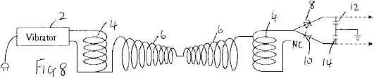 Fig.6 zeigt, wie die Oszillatorschaltung kann einen Motor über eine variable Drossel, die keine Überspannungen, die an den Motor angelegt werden könnten, entgegen angeschlossen. Durch Schneiden der separaten Spulen 9 (induktiv gekoppelt ist, um die Antenne) oder zu verkleinern, kann die Induktionswirkung auf den Motor mehr oder weniger erhöhte oder variable Luft Maßnahme kann auf der Oszillationsschaltung ausgeübt.