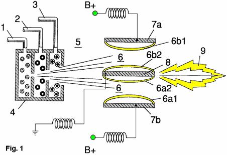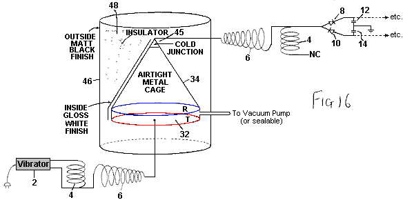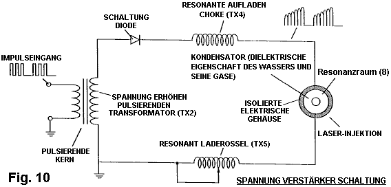 Neben dieser erheblichen Verbesserung ist es auch bevorzugt erwiesen, Doppel Induktivitäten mit Elektromagneten einzusetzen und um die Kondensatoren vorzugsweise zwischen zwei solchen Elektromagneten zu platzieren. Es wurde auch gefunden, dass die nützliche Wirkung von solchen Kondensatoren kann weiter erhöht werden, wenn eine Induktionsspule als induktiver Widerstand gegen den unverbundenen Pol des Kondensators, oder noch besser, wenn der Kondensator selbst als Induktions sator verbunden. Ein solcher Kondensator kann mit einer Feder, die, wenn sie zusammengedrückt wird, trägt in sich gespeicherten Kraft, die es wieder abgibt, wenn er losgelassen verglichen werden. Im Laden wird eine Ladung mit umgekehrtem Vorzeichen an ihrem anderen freien Kondensatorpol gebildet und bei einem Kurzschluss durch die Funkenstrecke auftritt, wird die gespeicherte Energie wieder zurück, da jetzt neue Energiemengen am Kondensator Pol zu dem verbunden induzierte gegeben Leiternetzwerk, das in der Tat auflädt mit entgegengesetzten Vorzeichen zu dem am freien Kondensatorpol. Die neuen induzierten Ladungen haben natürlich das gleiche Vorzeichen wie das Sammelnetz. Die gesamte Spannungsenergie in der Antenne dadurch erhöht wird. Im gleichen Zeitintervall werden größere Mengen an Energie angesammelt, als dies der Fall ohne eine solche Kondensatorsätze eingefügt.