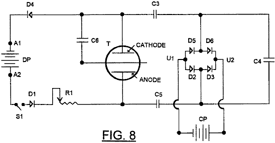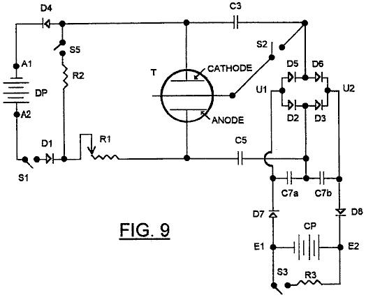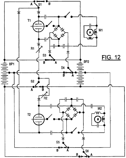 S1 und S2 kann auch mit einem solchen Regeleinrichtungen oder durch jede andere geeignete Vorrichtung zur Verfügung gestellt werden, im Fall von S2 von 11 veranschaulicht Wenn Überspannung gebildet werden, wird die Erde durch den Draht 12 und Funkenstrecke 8 durchgeführt, da diese Spannung wäre für die anderen Komponenten gefährlich. Die Wirkung dieser Kondensatorsätzen ist bereits beschrieben worden.