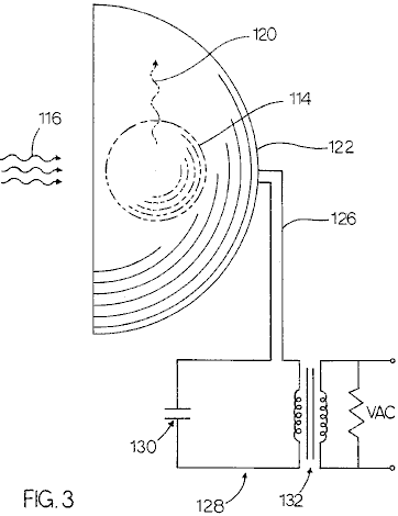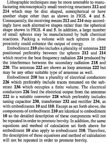 Bitte beachten Sie, dass dies ein Wieder formuliert Auszug aus diesem Patent. Es beschreibt sehr detailliert, verschiedene Methoden zum Abstrahieren nutzbare elektrische Energie aus passiven Antennenanlagen. Er beschreibt ein System mit 100 Kilowatt Leistung als "kleine" System.