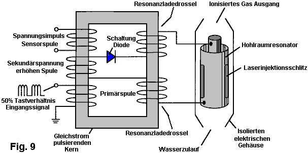 Durch Auswahl eines geeigneten Verhältnisses zwischen der Anzahl der Windungen in der Primär und Sekundärwicklungen, im Hinblick auf eine korrekte Anwendung der Koeffizienten der Resonanz (Kapazität, Induktivität und Widerstand) der Hochspannung im Primärkreis kann in geeigneter Weise in eine Niederspannung erzeugt werden Hochstromausgang.