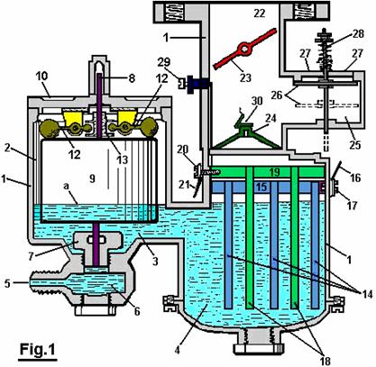 Die positive atmosphärische elektrische Ladung gesammelt neigt dazu, mit dem negativen Strom (oder Erde Strom) über den Schutzleiter verbunden zu kombinieren. Es bewegt sich entlang der Antenne A durch den Elektromagneten S ohne überprüft, wie es in der gleichen Richtung wie der Gleichstrom fließt. Ferner wird den Fortschritt von zwei Funkenstrecken in den Weg gelegt und den Ständer Kondensatoren verhaftet. Diese Kondensatoren aufzuladen, bis ihre Spannung, erforderlich, um die Funkenstrecke 7 zu springen, wenn ein Funke entsteht, und eine oszillierende Ladung wird über den geschlossenen Schwingkreis enthalten Motor M. Der Motor hier erhalten bildet die Kapazität und die notwendige Induktivität und den Widerstand, die wie übertrifft bekanntlich sind für die Umwandlung von statischer Elektrizität in elektromagnetische Wellenenergie notwendig.