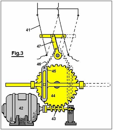 Fig.3 zeigt die einfachste Art und Weise der Umwandlung von atmosphärischem Strom in elektromagnetische Wellenenergie durch den Einsatz von speziellen Motoren für hohe Schwingungsströme oder statische Ladungen von elektrischer Energie angepasst sind. Jüngste Verbesserungen in Motoren für die Arbeit mit statischer Energie und Motoren arbeiten durch Resonanz, das heißt, mit Gruppen von abgestimmten elektromagnetischen kooperierenden Schaltung zu diesem möglich, bringt allerdings nicht Teil der vorliegenden Erfindung.