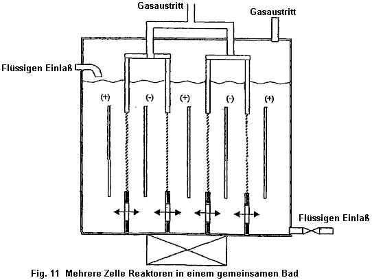 durch Durchblasen des Gases durch den perforierten horizontalen Elektroden der