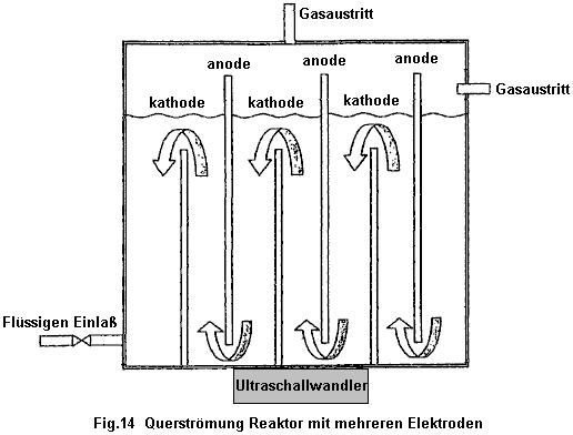 Einige chemische Verunreinigungen können nur nach unten durch Reduktion mit aktiven Wasserstoffatoms, der Plasmaentladung an der Kathodenelektrode erfordern würde brechen. Im Turmreaktor (Fig.7) und Querstromreaktor (Fig.6) ist es möglich, das Gas zurückhaltende Abdeckung auf einer Seite der Elektrode gegenüber der Seite der Gegenelektrode mit den Gasrückhalteabdeckungen aufweisen, so dass eine Wechselzone der Oxidation und Reduktion in den Reaktoren erzeugt, mit einer Vielzahl von Schadstoffen behandeln.