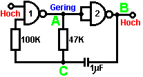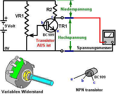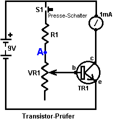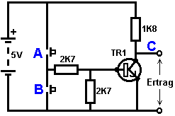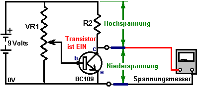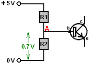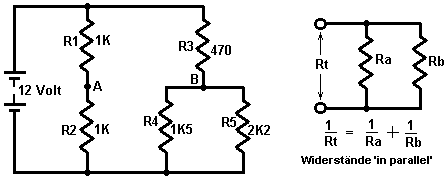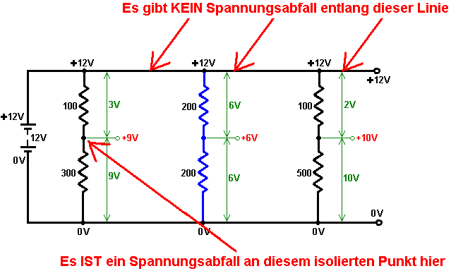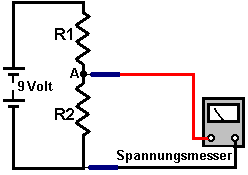 des Widerstands. Der genaue Wert der Spannung am Punkt "A"
