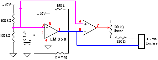 den OP77GP Verstärkers vergrößert. Seine Ausgabe an Pin 6 ist mit einer