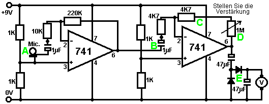 Am Punkt 'B' im obigen Diagramm, ein Verfahren zur Änderung der Strombereich des Milliamperemeter, indem ein "Shunt"-Widerstand über sie. Wenn der Schalter geschlossen ist, einige Strom fließt durch den Widerstand und einige durch das Amperemeter. Dieser Widerstand hat einen sehr niedrigen Wert, so sind Sie besser dran, it yourself. Sagen wir, wir wollen den Bereich des Zählers zu verdoppeln. Solder der Schalter über den Zähler und für den Widerstand verwenden eine Länge von Kupferlackdraht gewickelt um einen kleinen ehemaligen. Setz eine Last auf dem Ausgang, so dass der Zähler eine Vollausschlag. Schließen Sie den Schalter. Wenn die aktuelle angezeigte genau die Hälfte von dem, was es war, wenn nicht abschalten, entfernen Sie einige Draht, um das Lesen zu senken oder fügen Sie einige Draht, um das Lesen zu erhöhen und den Test wiederholen, bis genau die Hälfte der Strom angezeigt. Je niedriger der Wert des Shunt-Widerstand, desto mehr Strom fließt durch sie und die weniger durch das Messgerät, das gegebenenfalls einen unteren Lesung.