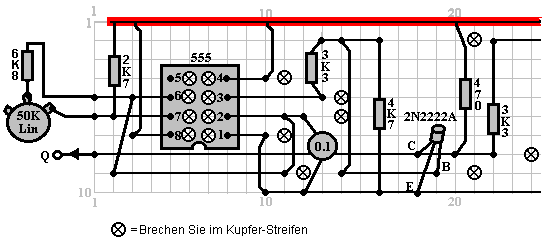 Bitte beachten Sie: Es ist sehr wichtig, um eine Sicherung oder Leistungsschalter in der Macht an Ihren Testschaltung geliefert haben. Jeder Fehler in dem Bau des Prototyps kann einen großen Strom von der Versorgung gezogen werden und das kann gefährlich sein. Denken Sie daran, Sie können nicht sehen den Strom. Selbst wenn Sie einen Meter auf der Strom, der geliefert haben, können Sie nicht bemerkt, die hohen Wert. Die ersten Anzeichen von Schwierigkeiten kann der Rauch sein! Sie können leicht anbraten der Schaltung Sie bauen, wenn Sie nicht über eine Sicherheits-Cut-off, so eine Sicherung oder ein anderes Gerät, das den Strom begrenzt auf das Doppelte, was Sie erwarten, dass die Schaltung zu zeichnen.