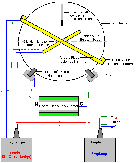 In jedem Fall fließt der Batteriestrom Öffner Relaiskontakt, Einschalten der Staffel-wicklung der Schaltkontakt, trennen das Relais und schließen also den Schaltkontakt wieder öffnet. Dies bewirkt, dass schnelle Taktung der die Batteriespannung und die Relais-Spule erzeugt hohe Spannungen, in der Regel von einigen hundert Volt. Wenn die Schaltverbindung wie gezeigt in der ersten Anordnung, dann öffnet das Relais-Schaltmodul, Back-EMF-Hochspannung, die Impulse an den Kreislauf eingespeist werden werden. Andererseits, wenn ein Relais mit zwei separaten Kontakte verwendet wird, der zweite Relaiskontakt Switch lässt sich Akku an den Stromkreis anschließen und trennen ihn wieder in ein sehr rascher Folge. Es gibt eine Gruppe von Menschen an http://tech.groups.yahoo.com/group/testatika/ die Arbeiten auf dem Weg zu eine operative Version dieses Gerätes. Informationen über den Coler-Geräten ist bei übersichtlich dargestellt. http://rimstar.org/sdenergy/coler/index.htm#STROMERZEUGER.