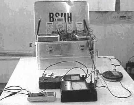 ist. Das Gerät besitzt zwei Hufeisenmagnete abgestimmte Spulen und einem hohlen